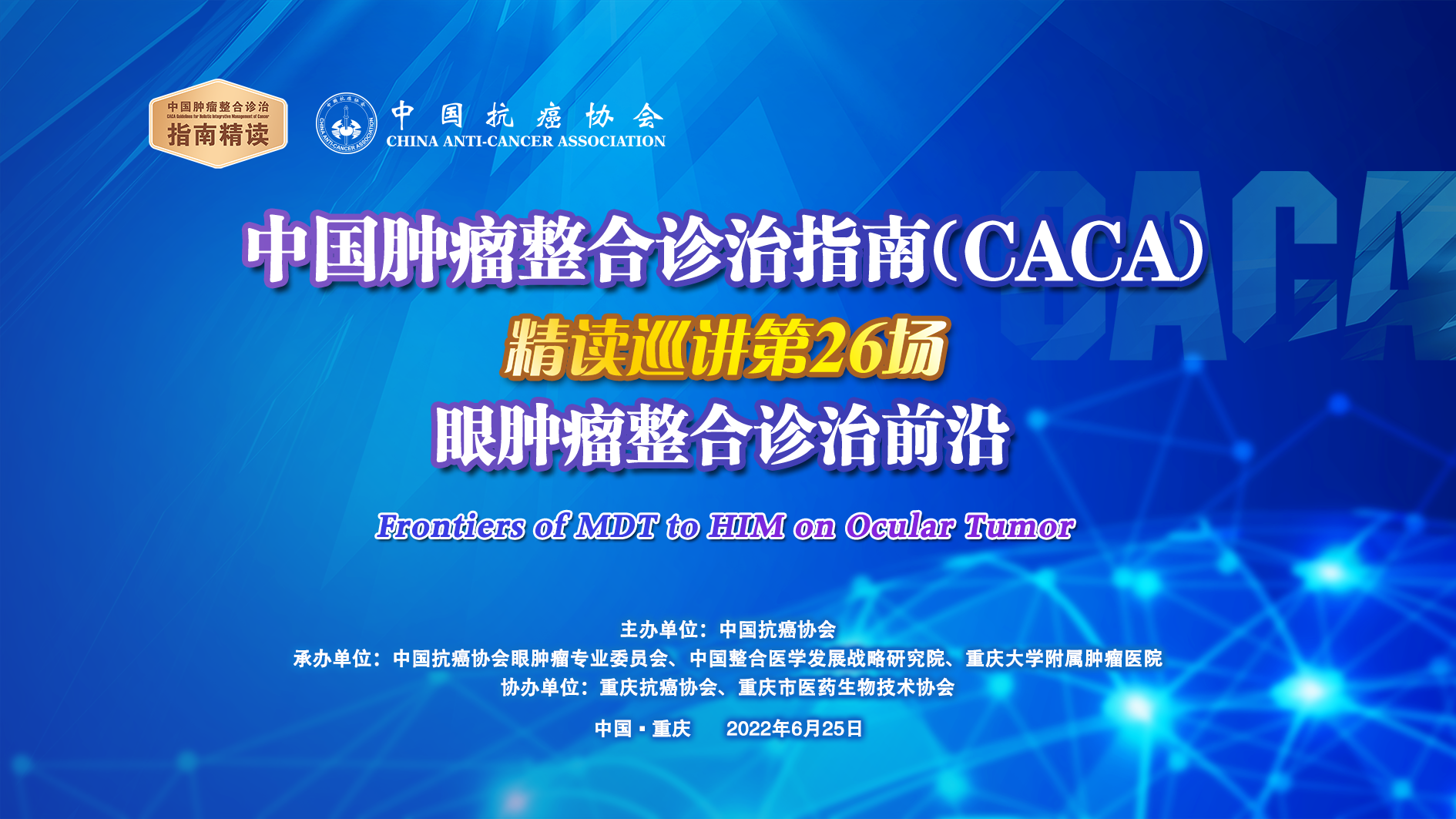【精读预告】6月25日|第26站:眼肿瘤整合诊治前沿——中国肿瘤整合诊治指南(CACA)精读巡讲