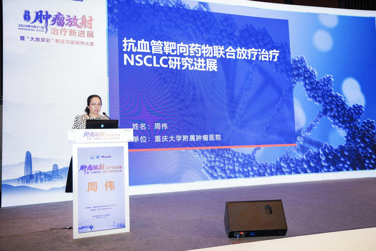 会议后半程,重庆大学附属肿瘤医院周伟教授分享了抗血管靶向药物联合放疗治疗 NSCLC 的研究进展,为肿瘤放射治疗领域带来新的思路。