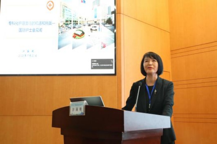 大连医科大学附属第二医院沙丽艳教授以《国际化护理面临的机遇与挑战—国际护士会见闻》为题进行主题报告。她结合自身参加国际会议的经历,分析了全球护理发展动态、跨文化护理需求以及中国护理与国际接轨的可行路径,激发了与会者对护理事业国际化发展的深入思考。