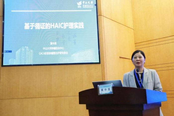 中山大学肿瘤防治中心的黄中英教授分享了《基于循证的HAIC护理实践》。她系统梳理了肝动脉灌注化疗(HAIC)的护理要点、并发症监测及干预策略,通过循证证据提升了护理措施的针对性与安全性。