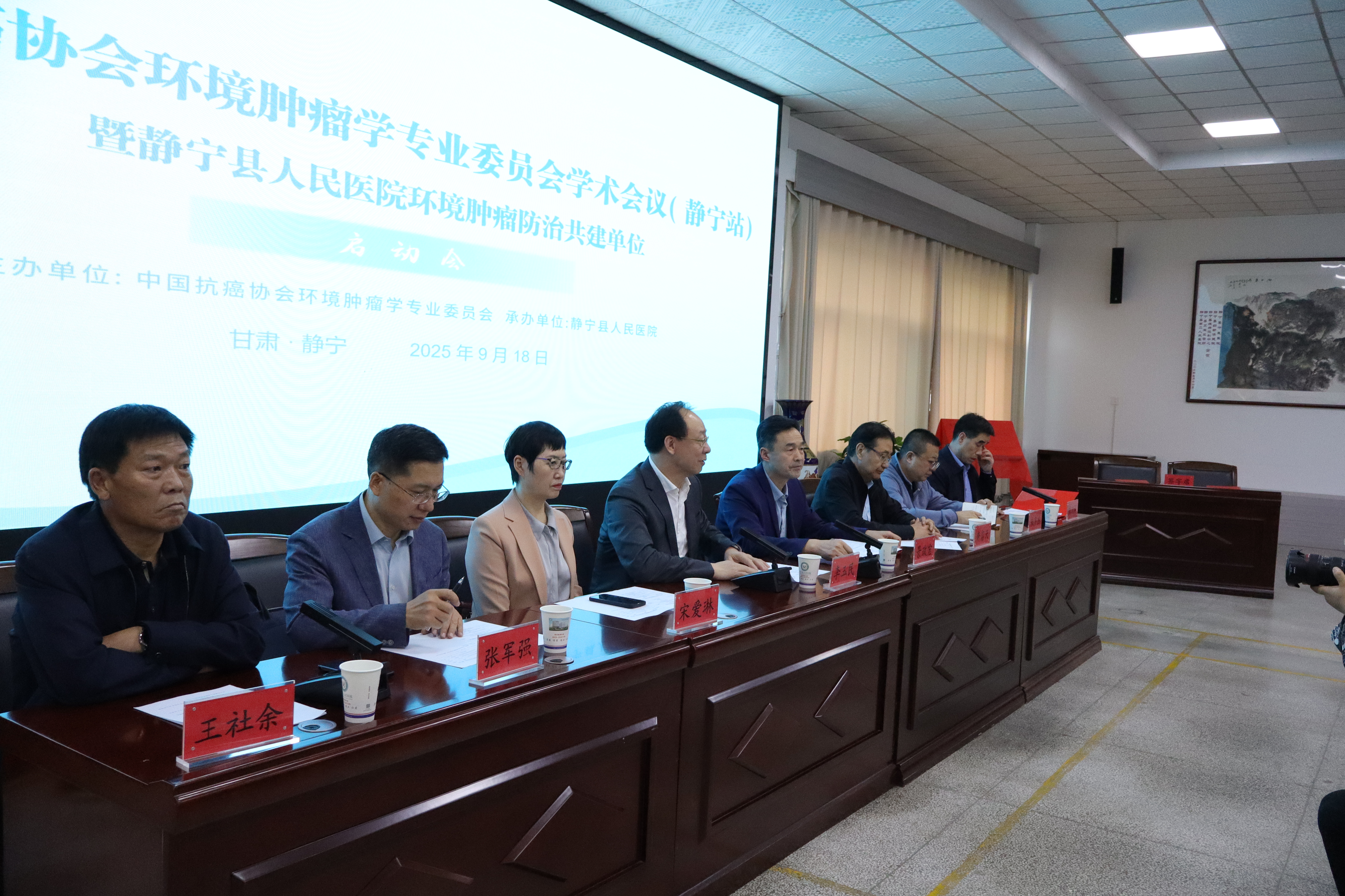 2025 年 9 月 18 日,中国抗癌协会环境肿瘤学专业委员会主任委员、兰大二院普通外科首席专家李玉民教授带领团队前往静宁县人民医院,组织召开中国抗癌协会环境肿瘤学专业委员会学术会议(静宁站)暨静宁县人民医院环境肿瘤防治共建单位启动会。静宁县卫生健康局局长景政宏、静宁县人民医院院党委书记王社余、静宁县人民医院院长朱国军、静宁县人民医院副院长翟浩以及静宁县人民医院各科医务人员约100余人参加会议。