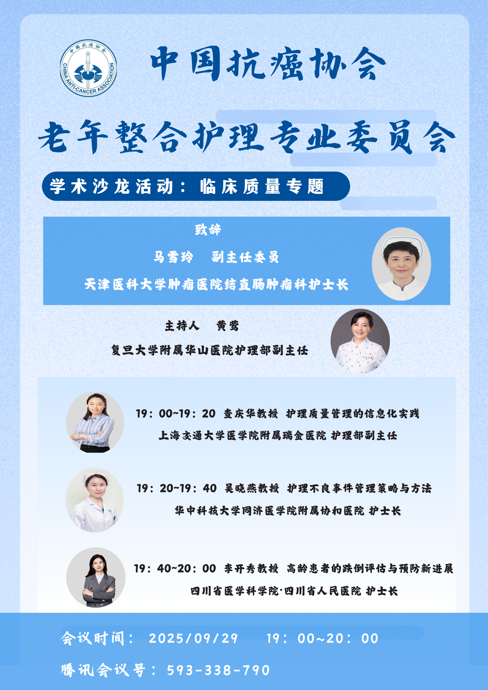 2025年中国抗癌协会老年整合护理专业委员会线上学术沙龙活动:临床质量板块