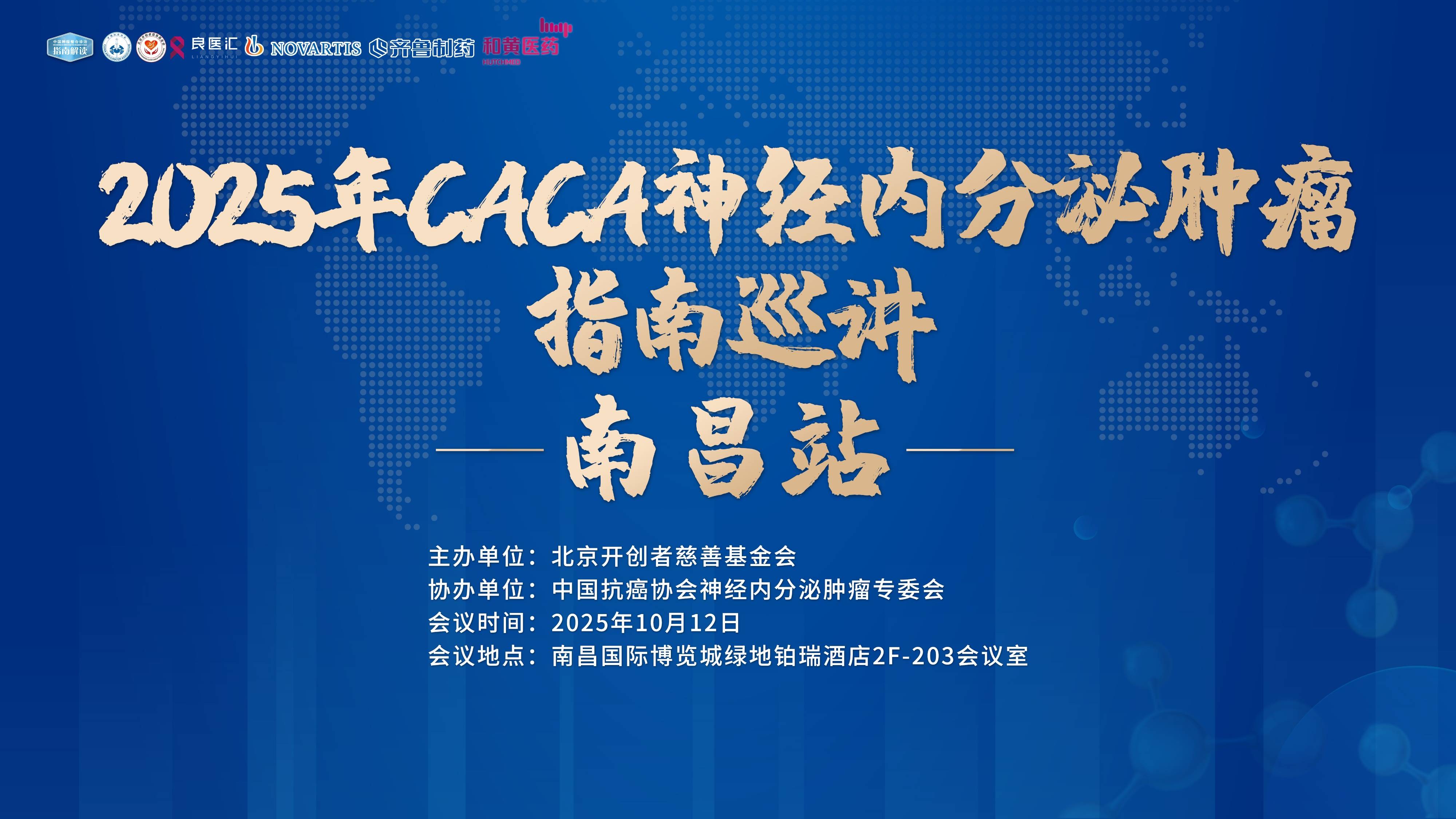 由北京开创者慈善基金会主办,中国抗癌协会神经内分泌肿瘤专委会协办的“2025年CACA指南神经内分泌肿瘤巡讲——南昌站”将于2025年10月12日(周日)08:30-12:00在南昌隆重举行!