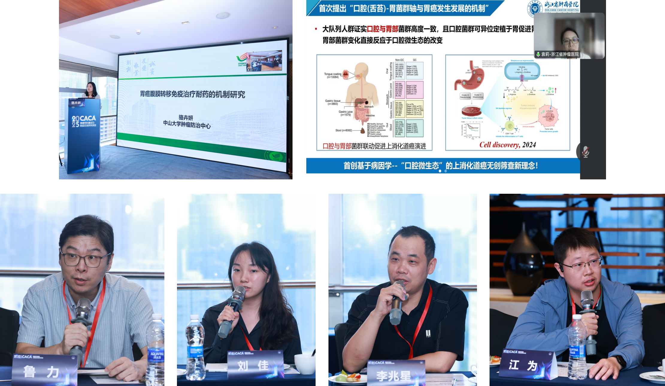 第二节学术会议中山大学肿瘤防治中心骆卉妍教授分享了《胃癌腹膜转移免疫耐药的机制研究》。浙江省肿瘤医院袁莉教授介绍了《胃癌早期筛查与诊断新技术开发及推广应用》。湖北省肿瘤医院鲁力教授、中山大学肿瘤防治中心刘佳教授、河北医科大学第四医院李兆星教授、华中科技大学同济医学院附属同济医院江为教授参与本环节讨论。