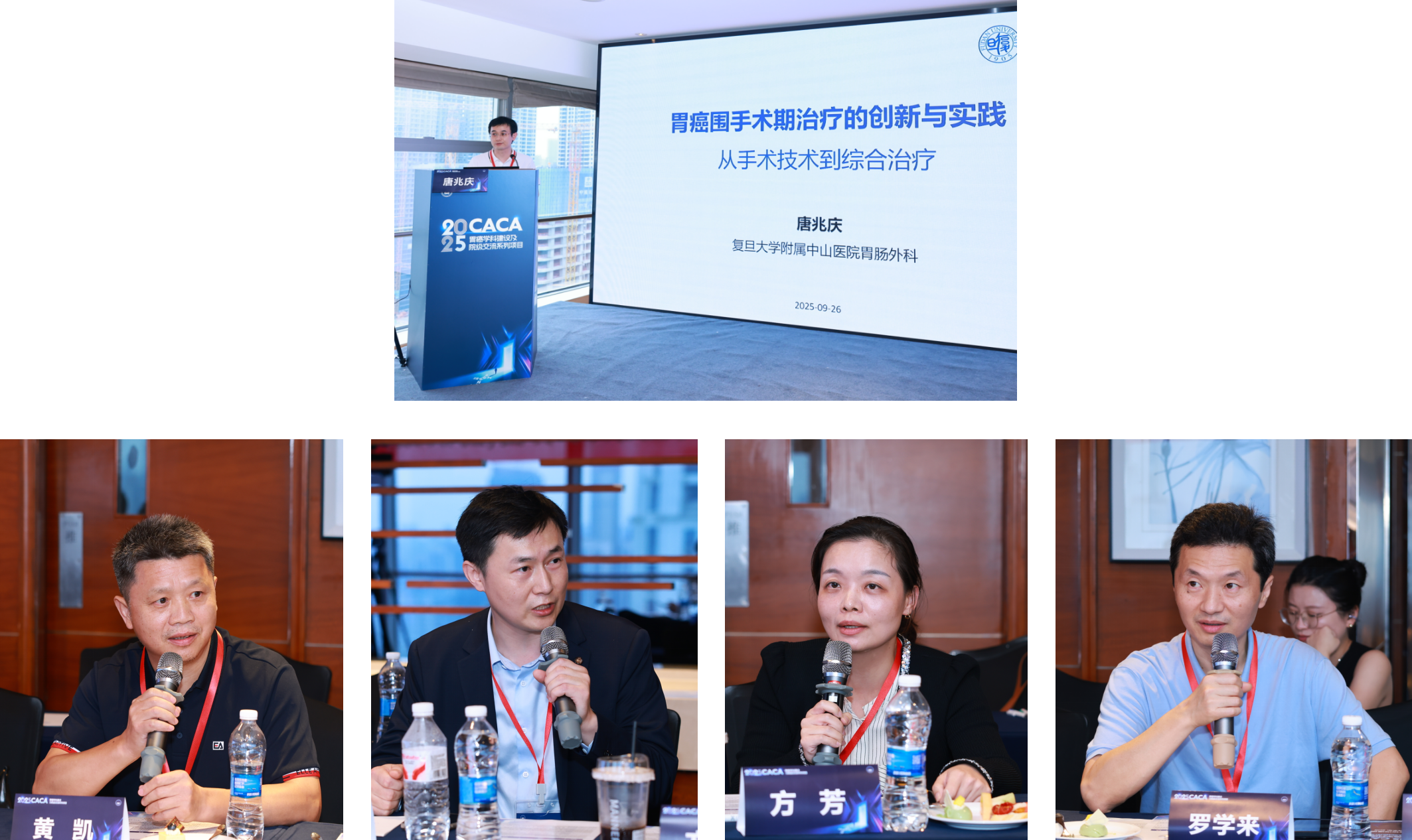 第三节学术会议复旦大学附属中山医院唐兆庆教授分享了《胃癌围术期治疗的创新与实践》。江西省肿瘤医院黄凯教授、河北医科大学第四医院刘庆伟教授、岳阳市中心医院方芳教授、华中科技大学同济医学院附属同济医院罗学来教授参与本环节讨论。