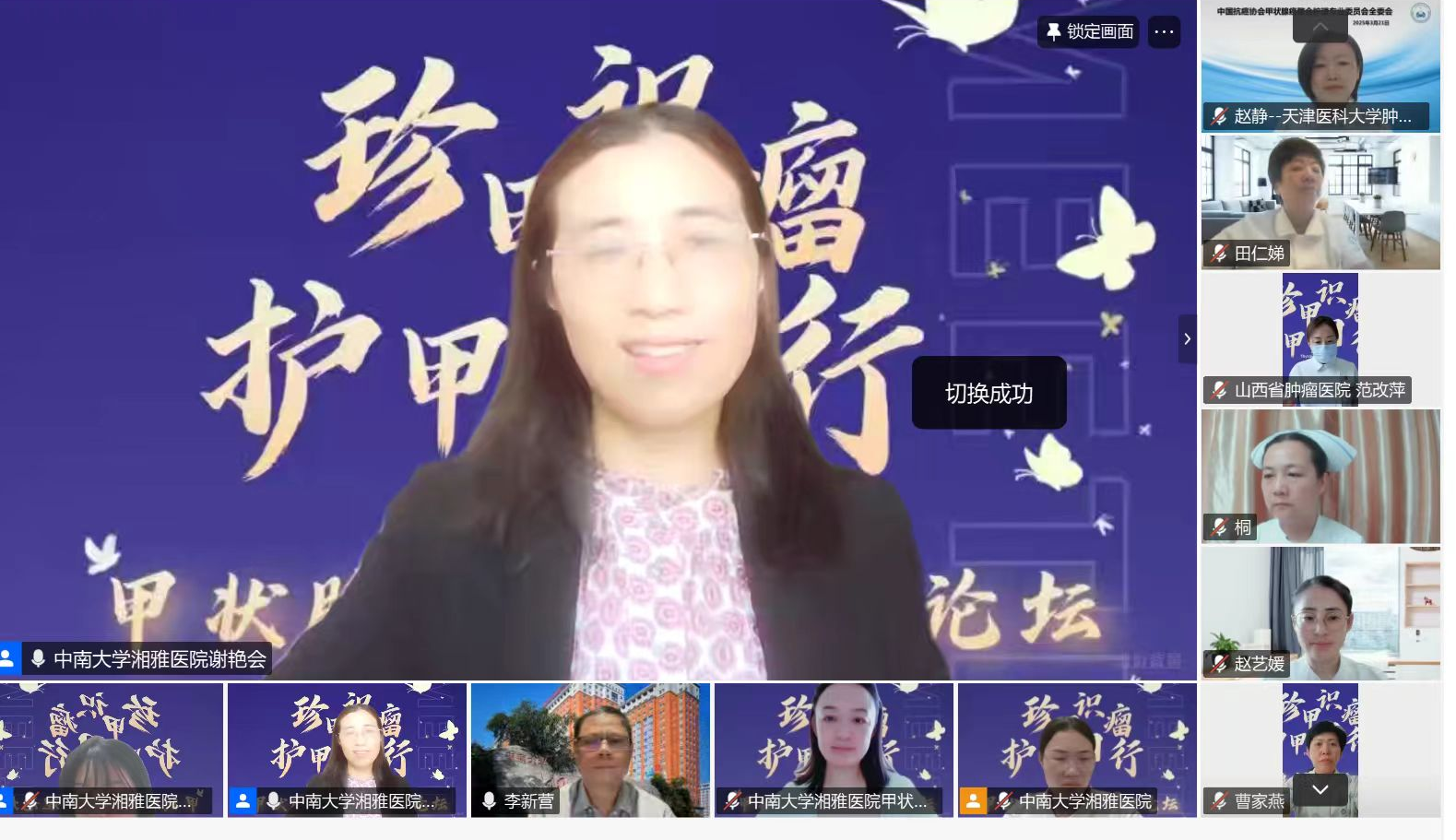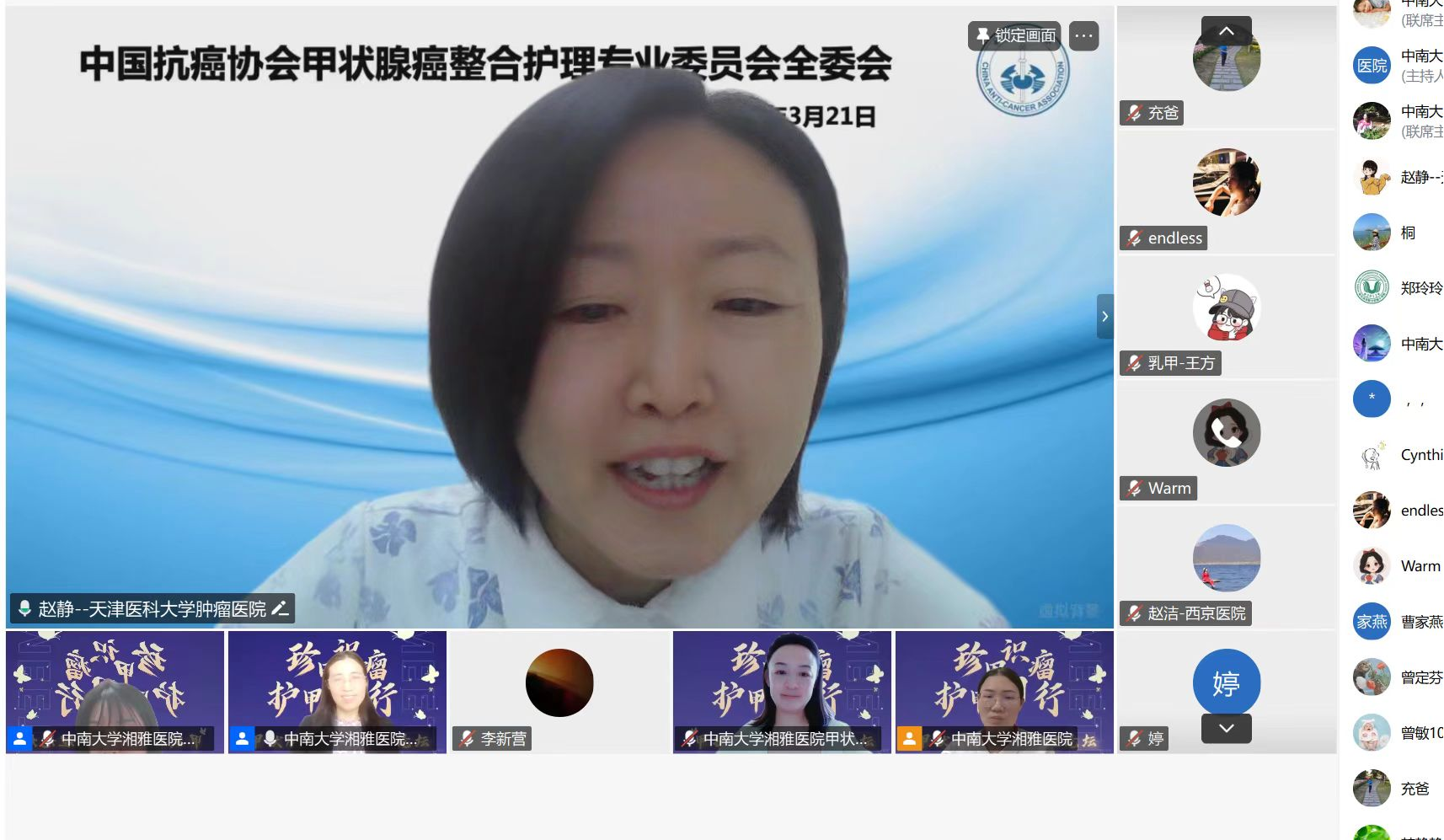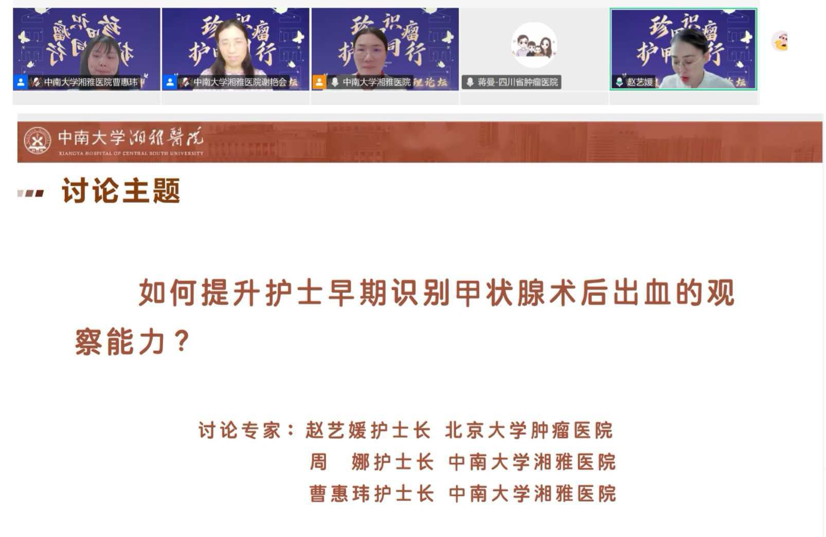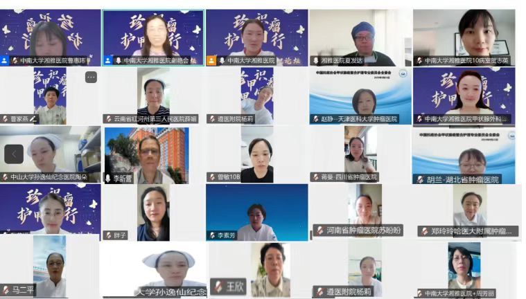 2025年9月28日,在自然景观绚烂、气候宜人的秋天。由中国抗癌协会甲状腺癌整合护理专业委员会主办,中南大学湘雅医院承办的“珍甲识瘤 护甲同行”甲状腺癌整合护理论坛--长沙篇在线上以视频会议形式成功举办。