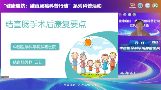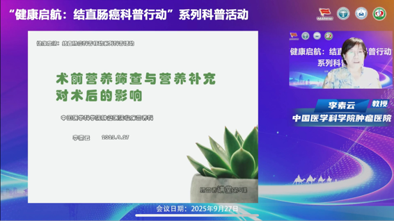 活动第一项由营养科主任李素云教授围绕《结直肠癌术前营养筛查及营养补充对术后的影响》展开分享。直播中,她详细介绍营养不良对手术耐受性、术后恢复的影响,讲解术前营养筛查的具体指标与评估流程;针对术后营养补充,她破除“术后要大补”“只能吃流食”的误区,给出分阶段饮食过渡方案,阐明了科学营养补充的重要价值。让大家认识到术前营养筛查与术后营养补充的重要性,为顺利完成诊疗、加快康复提供了科学指导。