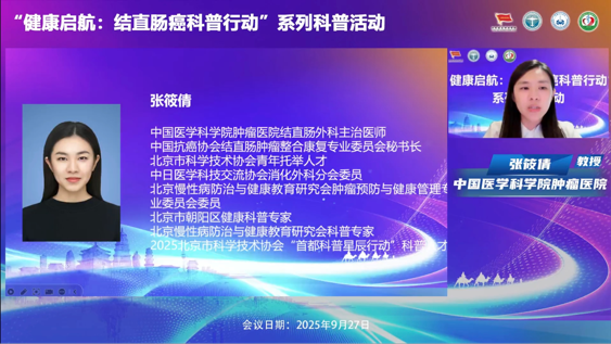 此次科普活动由中国医学科学院肿瘤医院结直肠外科张筱倩医生担任主持,活动邀请国家癌症中心各个科室教授针对结直肠癌的预防、筛查、诊断、治疗、康复等多个方面进行讲解科普。