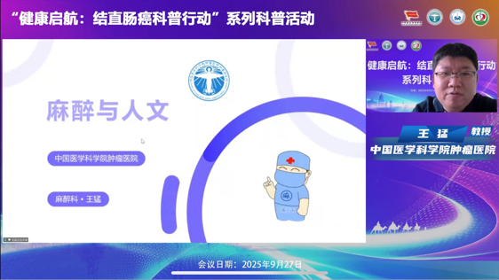 活动第四项《麻醉与人文的双向守护》由麻醉科王猛教授开启科普。他通过直播镜头,拆解结直肠癌手术麻醉的术前评估、术中监测、术后苏醒全流程,破除“麻醉会影响记忆力”“全麻风险高”等认知误区。随后,他结合临床案例,讲述如何通过术前一对一沟通缓解患者焦虑、术后依据疼痛评分动态调整镇痛方案,还特别提及远程跟进患者恢复情况、提供心理疏导的细节,为后续诊疗沟通打下了良好的基础。