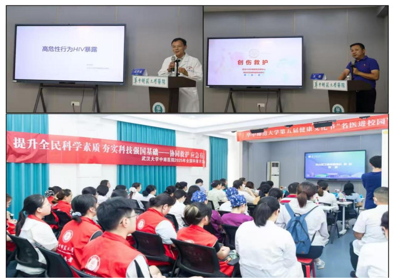 9月17日,武汉大学中南医院受邀参与华中师范大学第五届健康文化节,联合校医院开展“提升健康素养,掌握急救技能”名医进校园活动,头颈与儿童肿瘤放化疗科作为科普组成员单位也参与了此次活动。活动涵盖急救技能培训、健康咨询和专题讲座三大板块,精准对接师生健康需求。。