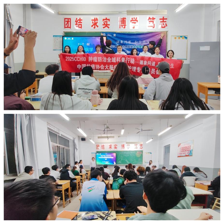 期间任丽英为学生们详细讲解大肠癌症状、早筛、规范治疗及康复管理等知识,并普及癌症的三级预防,呼吁大家积极参与防癌抗癌,践行健康文明生活方式,切实加强大众对癌症的正确认识和科学防控。同时也希望大学生们能够化身防癌科普达人,将社会大众关心关注的肿瘤健康科普知识送入千家万户,增强全民防癌抗癌意识,积极推进全民健康生活方式。倡导“每个人是自己健康的第一责任人”理念,科学指导大众开展自我健康管理 ,正确认识了解癌症,助力全民健康素养持续提升,更好满足人民群众日益增长的健康需求。
