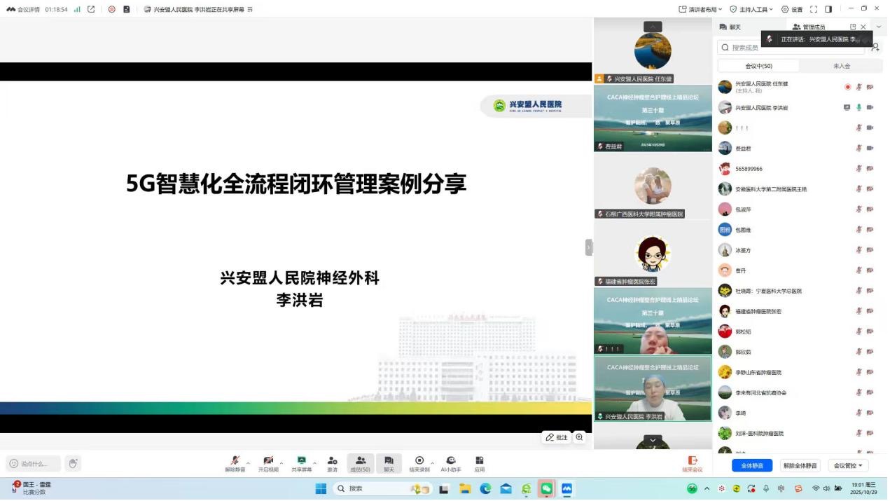 兴安盟人民医院神经外科李洪岩护士长做《5G智慧化全流程闭环管理案例分享》汇报