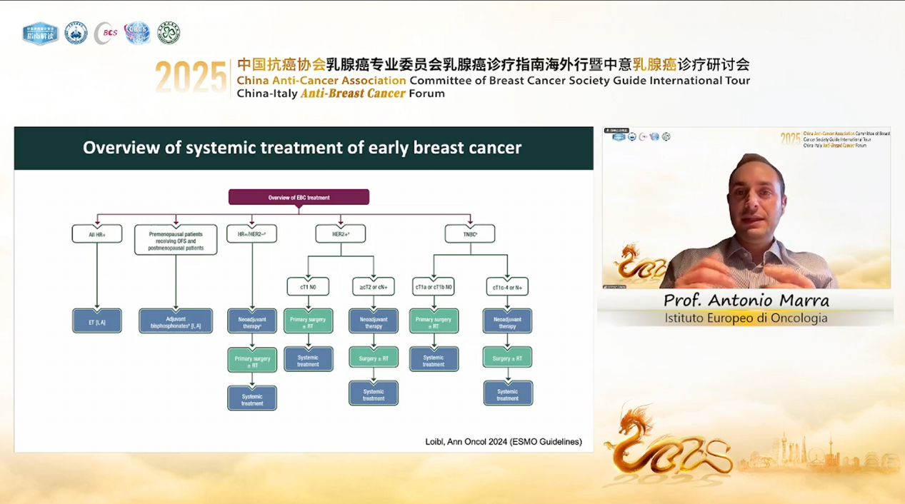 最后,Marra教授总结表明,所有治疗都应在专业的乳腺中心由多学科团队指导下进行,并鼓励患者参与临床试验。治疗策略必须是个体化的,需综合考量肿瘤负荷、生物学特征、患者全身状况及个人偏好等多种因素,为患者选择合适的治疗方案。