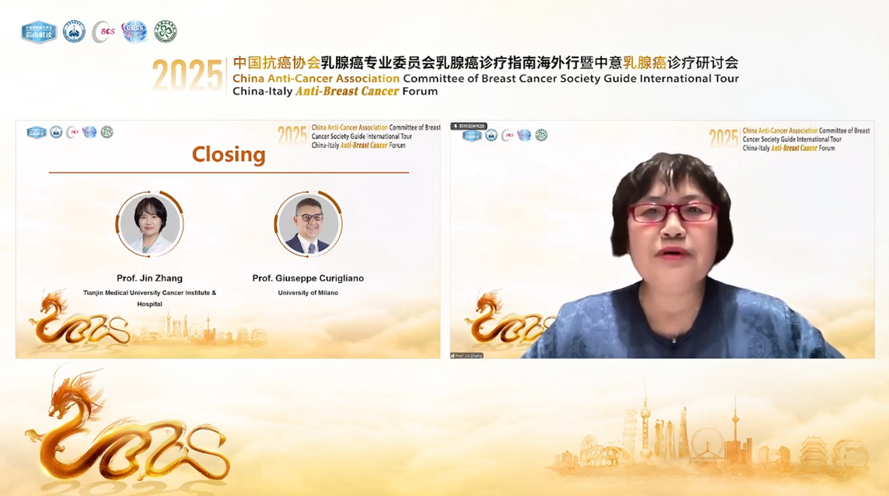 会议最后,张瑾教授衷心感谢所有演讲嘉宾、讨论嘉宾及与会者的深度交流,并特别指出本次会议的重要意义,既标志着中国乳腺癌诊疗指南的海外交流正式启航,又通过精选外科技术与新辅助治疗等前沿主题,促进了中意顶尖专家的智慧碰撞。期待未来可进一步共同推动制定中意乳腺癌联合指南。