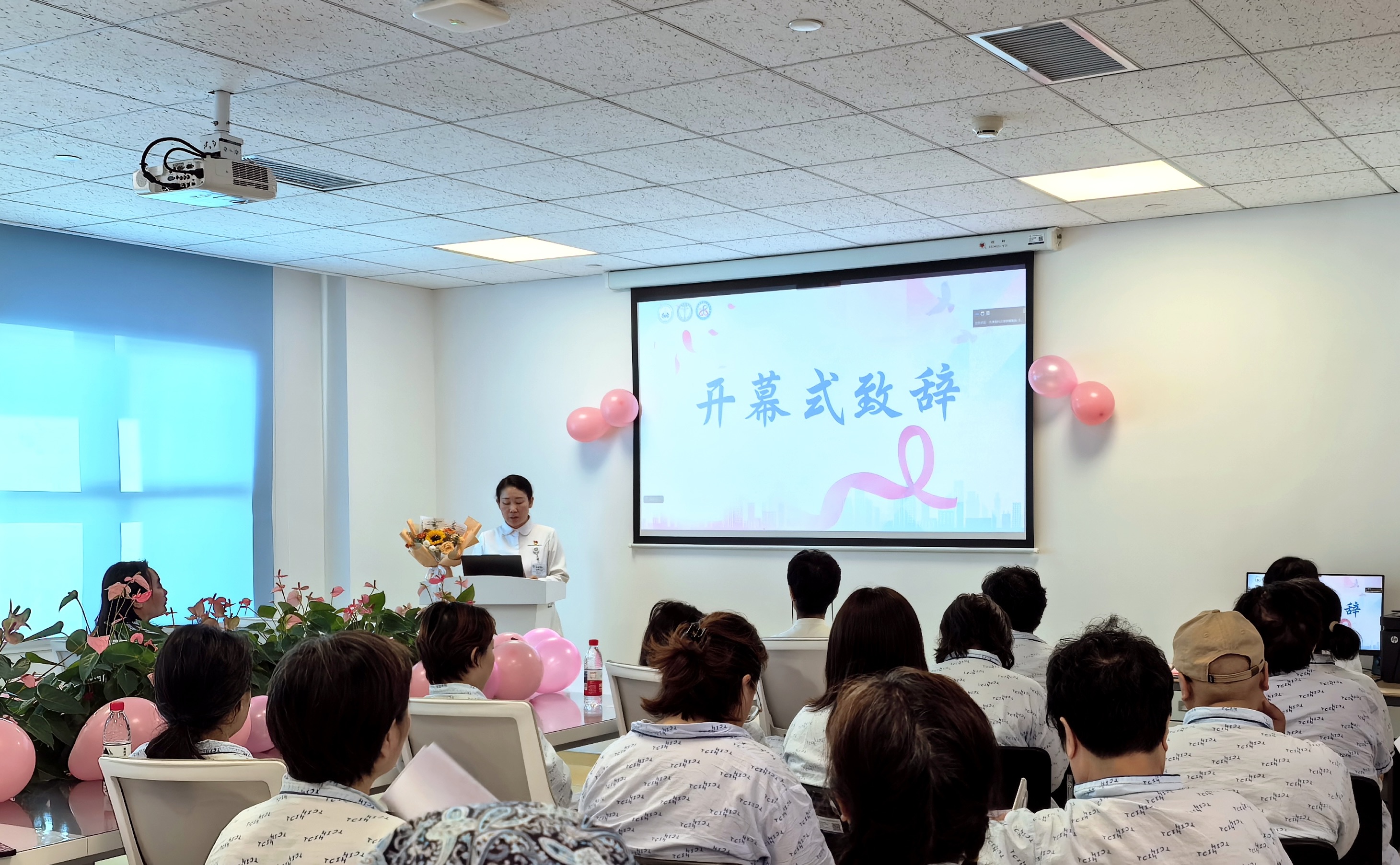中国抗癌协会乳房再造整合护理专业委员会秘书、天津医科大学肿瘤医院乳房再造科护士王小媛主持开幕式,她向线上线下的参会者系统介绍TTT&TLT项目的筹备历程与阶段性进展。该项目在中国抗癌协会各级领导及中国抗癌协会整合护理委员会领导的悉心指导与鼎力支持下,凝聚了全国21家单位的协同力量,目前已高质量完成标准化课件体系搭建,Coach、Trainer、Lover核心团队遴选及规范化培训等关键筹备工作。
