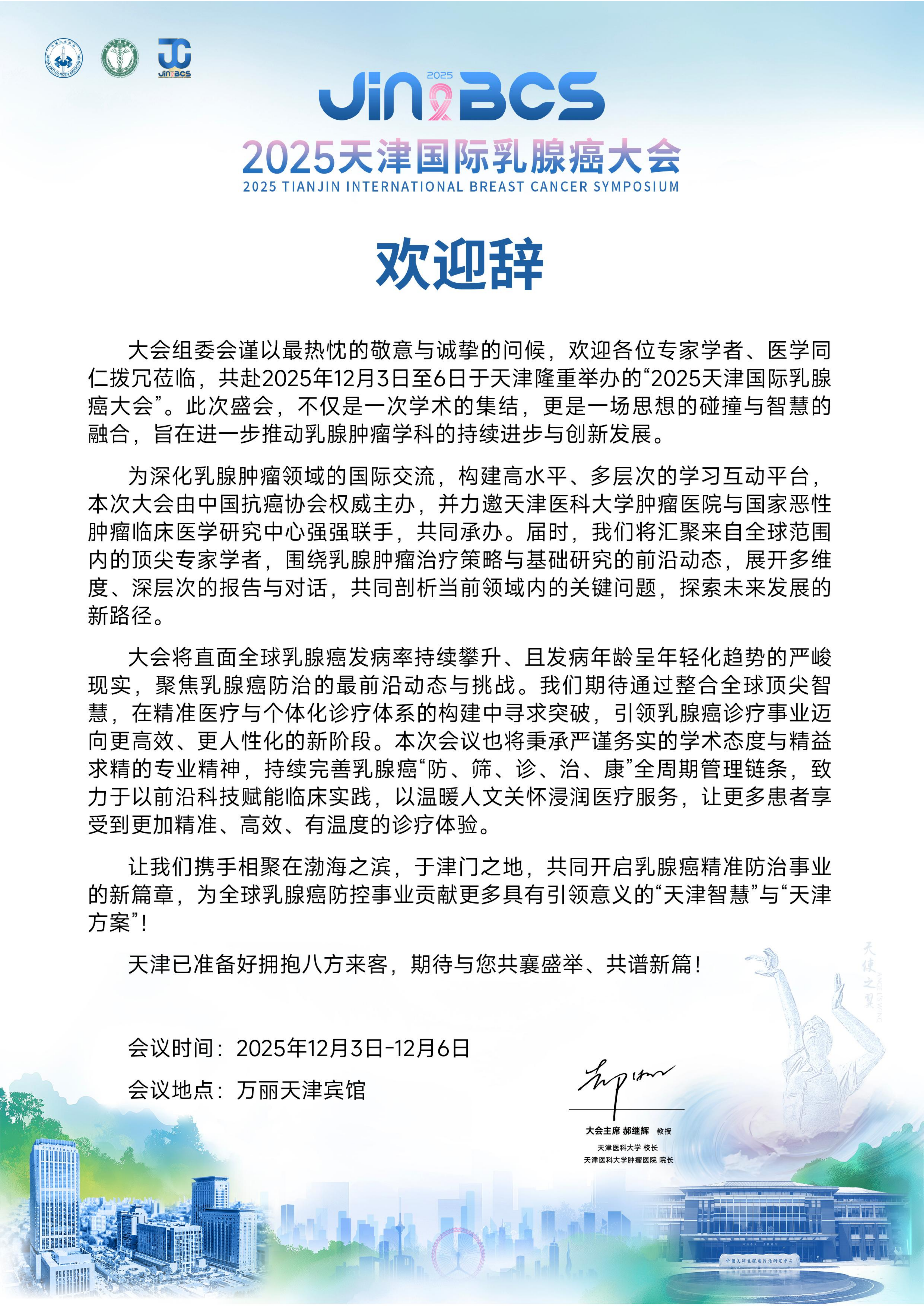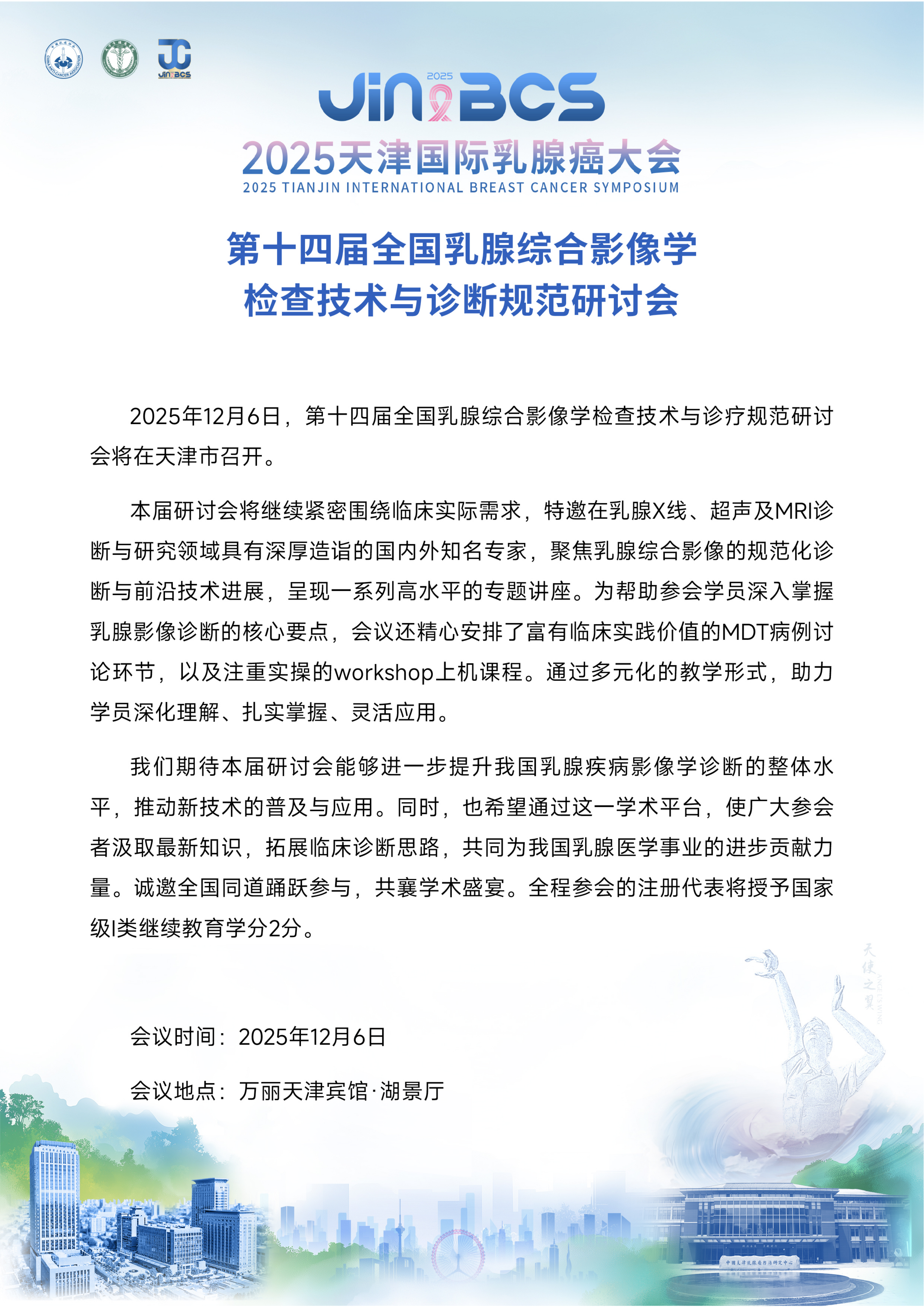 会议预告 | 2025天津国际乳腺癌大会暨第十四届全国乳腺综合影像学检查技术与诊断规范研讨会