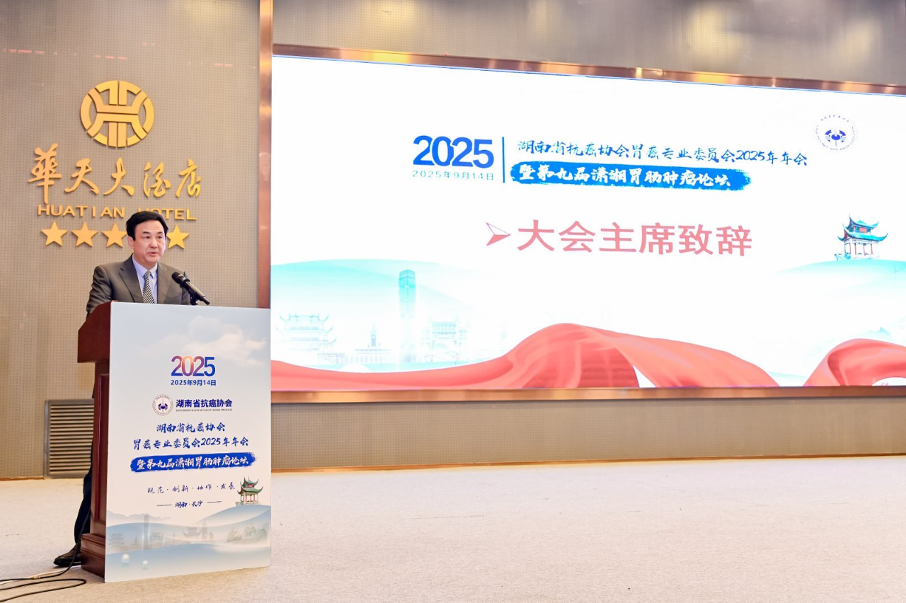 紧接着,9月14日,“湖南省抗癌协会胃癌专业委员会2025年学术年会暨第九届潇湘胃肠肿瘤论坛”在长沙盛大举行。本次年会由湖南省抗癌协会主办、胃癌专业委员会承办,吸引了来自全国各地的胃癌及胃肠肿瘤领域知名专家、临床医师和青年学者参与。会议以“推动胃癌及胃肠肿瘤防治事业高质量发展”为主题,在开幕式上,中南大学湘雅二医院院领导及湖南省抗癌协会胃癌专业委员会主任委员分别致辞,热烈祝贺会议召开,并充分肯定了专业委员会在胃癌规范化诊治、学科建设与人才培养方面取得的显著成就。