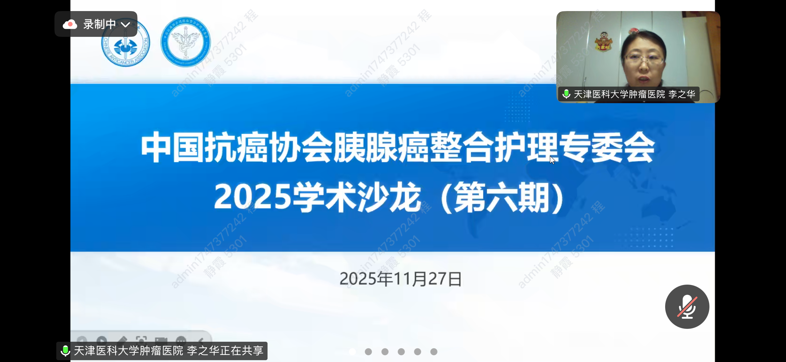 2025年11月27日,中国抗癌协会胰腺癌整合护理专委会2025学术沙龙第六期成功线上举办。此次沙龙作为专委会2025年学术活动的收官,汇聚了来自全国各地的胰腺癌护理专家,共同探讨了胰腺癌护理领域的最新进展和挑战,为推动胰腺癌护理的规范化、专业化发展注入了新的活力。