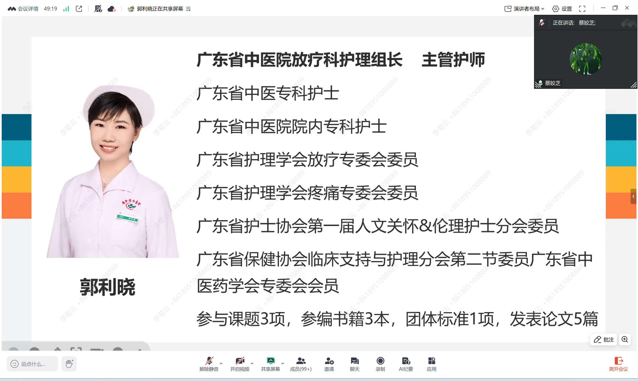 本次活动由专委会副主任委员、广东省中医院蔡姣芝科护士长主持,邀请国内肿瘤护理领域专家围绕中医适宜技术的临床应用展开深度研讨,旨在推动中西医协同护理创新,切实提升肿瘤患者的就医舒适度与生活质量。