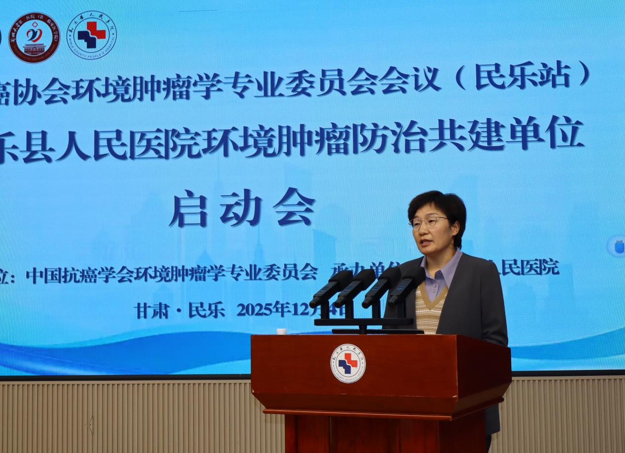 2025 年 12 月 4日,中国抗癌协会环境肿瘤学专业委员会主任委员、兰大二院普通外科首席专家李玉民教授带领团队前往民乐县人民医院,组织召开中国抗癌协会环境肿瘤学专业委员会学术会议(民乐站)暨民乐县人民医院环境肿瘤防治共建单位启动会。民乐县县政府副县副县长李玉莲,民乐县卫生健康局局长王晶,民乐县人民医院党委书记牛昕国,民乐县人民医院院长胡永福及民乐县人民医院各科医务人员180余人参加会议。