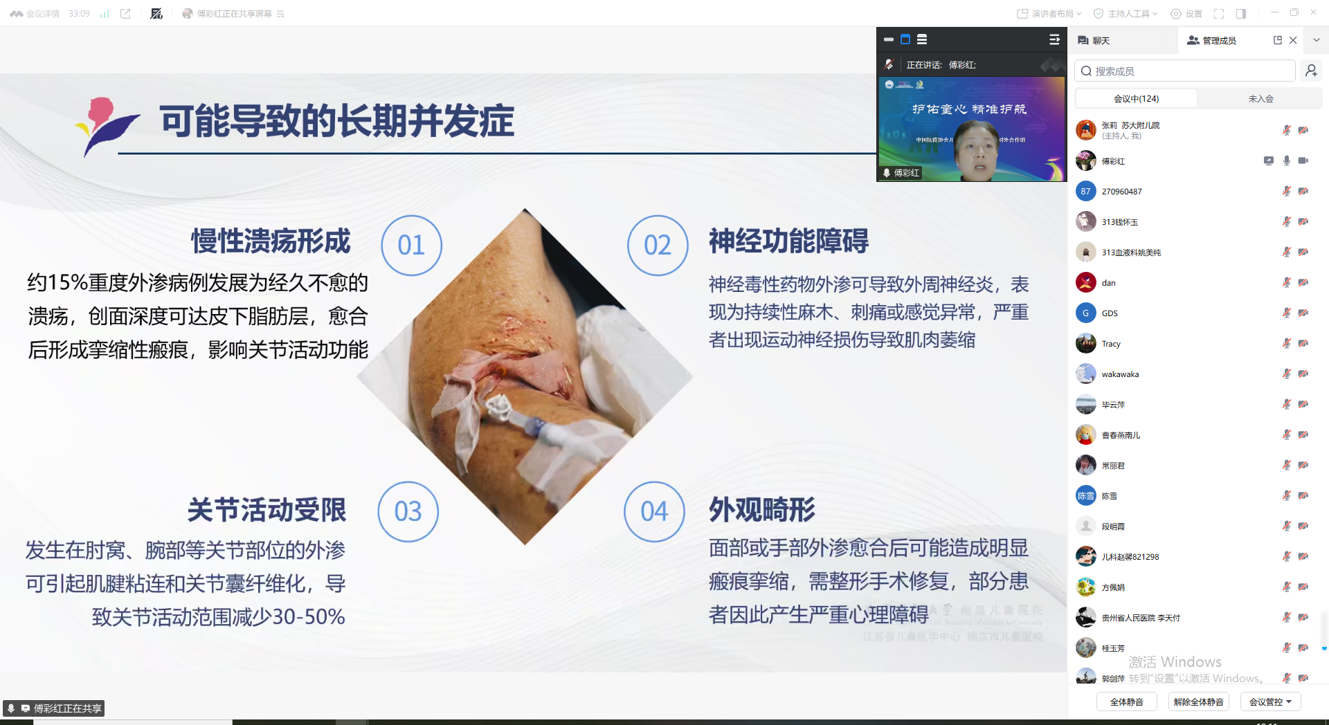 南京儿童医院付彩虹护士长以《化疗药物外渗的预防与处理》为题,系统阐述了儿童肿瘤化疗中药物外渗的风险因素、早期识别要点及规范化处理流程。她强调,儿童血管细、配合度低,外渗预防需从“评估-选择-固定-监测”全流程入手,结合患儿年龄特点制定个性化护理方案;针对外渗后处理,她详细讲解了不同药物类型的应急处置措施及皮肤损伤修复策略,为临床实践提供了可操作性强的技术指导。