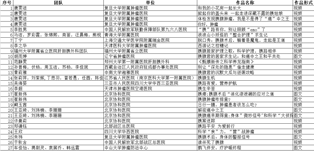 为深入推进胰腺癌整合护理理念的普及与推广,鼓励广大护理人员积极参与健康科普创作,提升公众对胰腺癌防治知识的认知与自我管理能力,中国抗癌协会胰腺癌整合护理专业委员会于2025年9月至11月举办 “科普之光,‘胰’路相伴”胰腺肿瘤防治科普比赛。