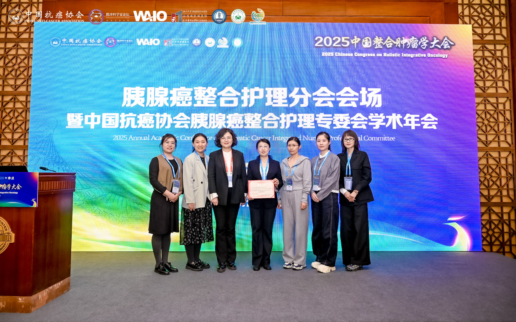 科普作品展播环节也作为2025CCHIO科普嘉年华科普抗癌小火车中的一站,展现了护理人的科普力量。之后,中国抗癌协会胰腺癌整合护理专委会主任委员为优秀科普作品团队颁发荣誉证书。