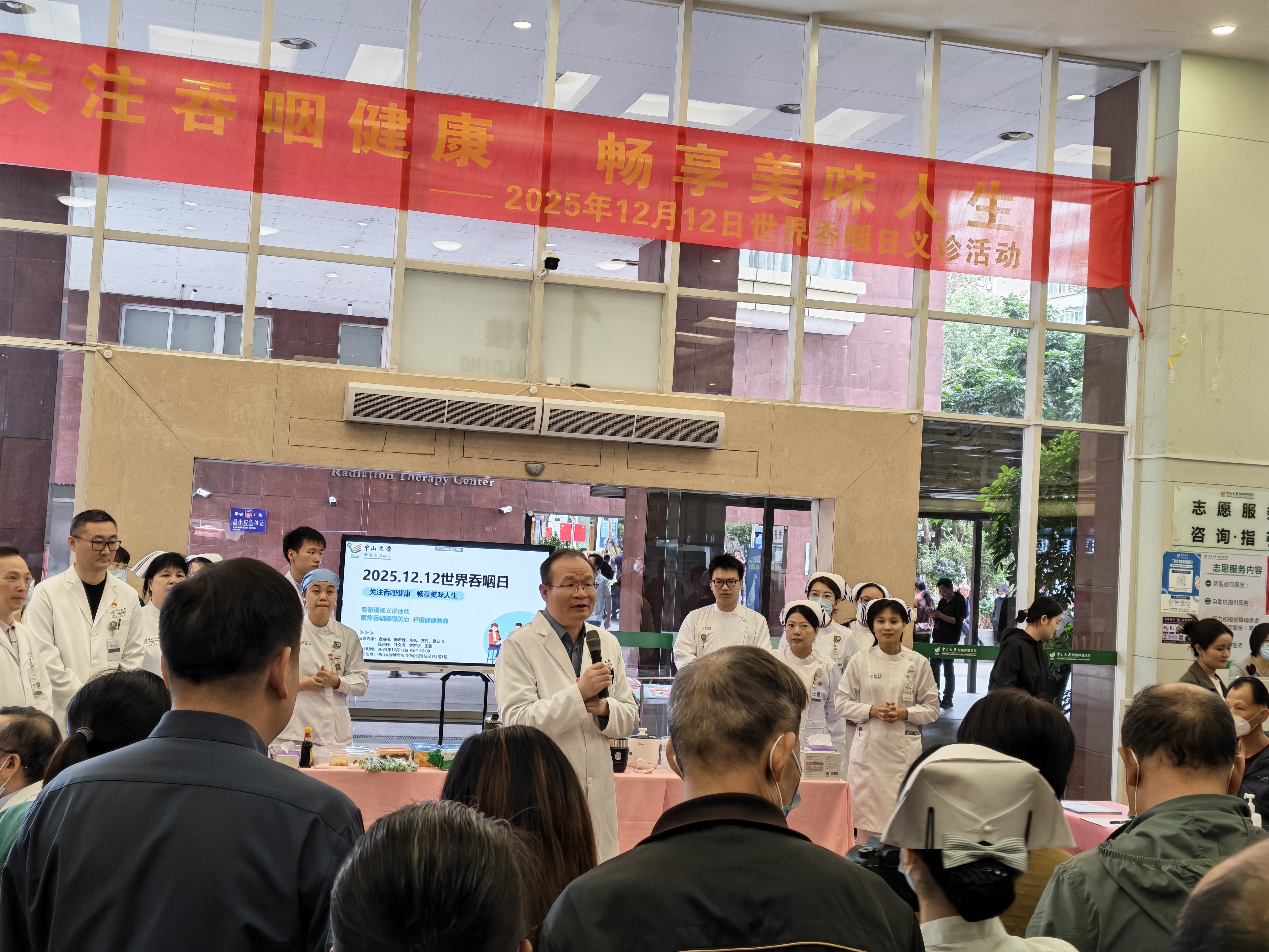 在第十三个“世界吞咽日”到来之际,中山大学肿瘤防治中心举办了一场内容丰富、形式多样的吞咽健康主题宣传与义诊活动。此次活动由中国康复医学会吞咽障碍专业委员会、中国抗癌协会鼻咽癌整合康复专委会主办,中山大学肿瘤防治中心鼻咽科联合神经外科、胸科、头颈外科、放疗科、营养科等多学科专家共同参与,旨在进一步提升公众对吞咽障碍的认识,帮助患者获得更科学、更规范的康复指导。