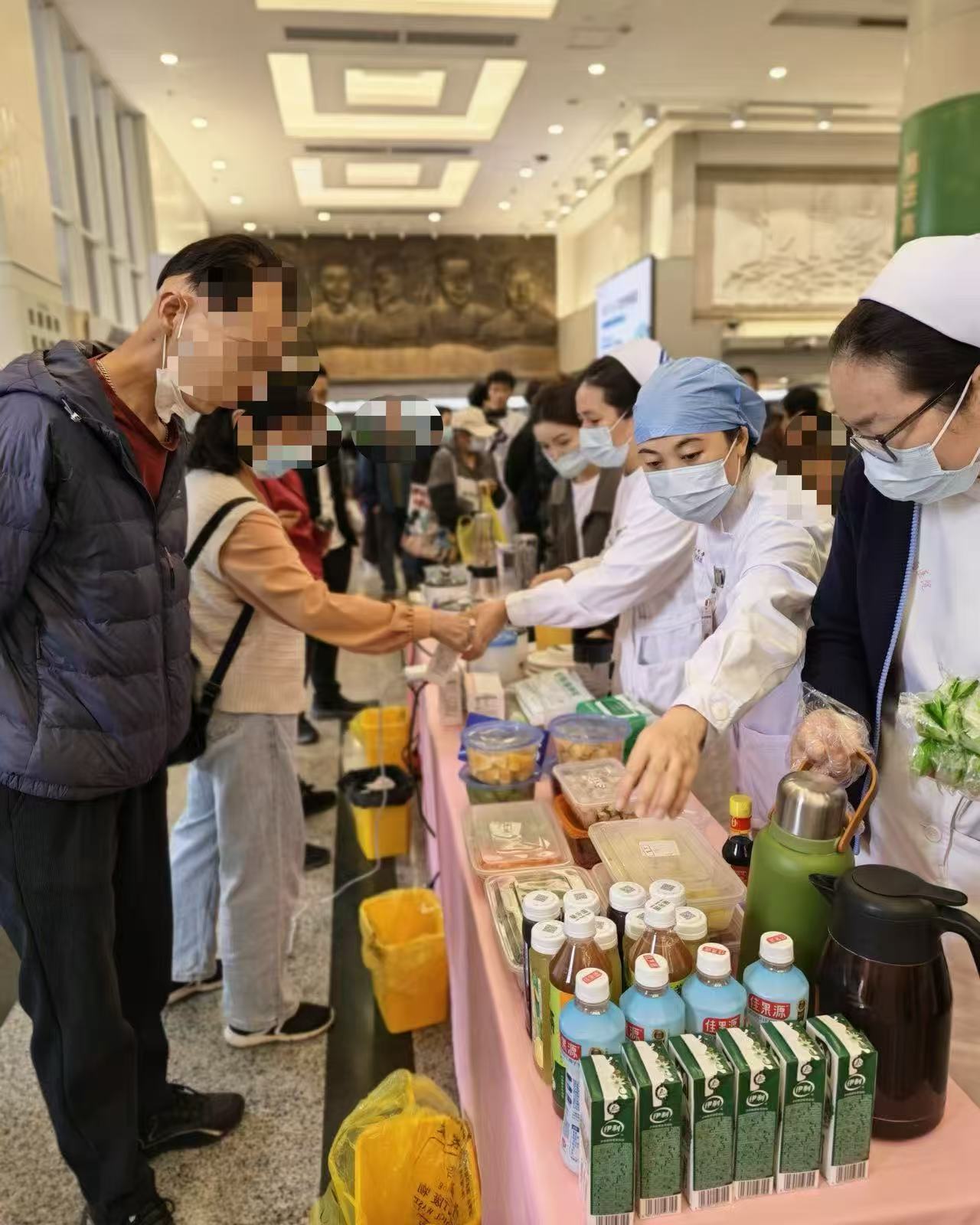 在吞咽特殊食物展示区,吞咽康复小组成员现场示范糊状、泥状、细碎状等不同质地的安全食物制作方法,并介绍如何根据患者吞咽能力调整饮食结构。患者和家属们围观学习,纷纷拍照记录。“原来食物还能这样做,既安全又能提高食欲!”一位患者家属感慨道。