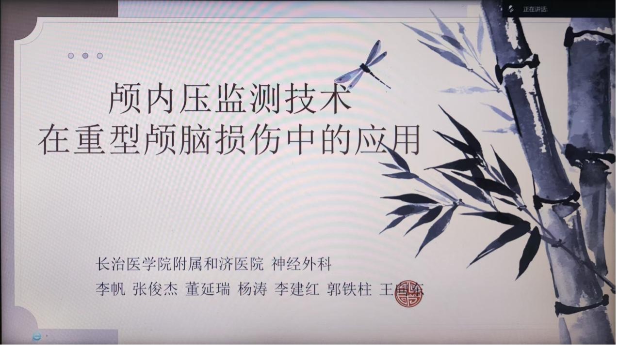 长治医学院附属和济医院神经外科李帆教授做《颅内压监测技术在重型颅脑损伤中的应用》汇报