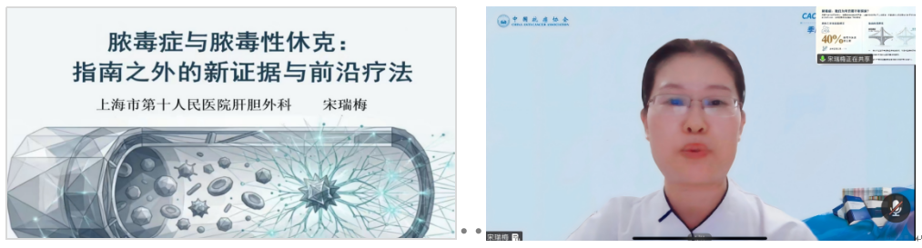 学术会议上,还围绕疑难病例讨论中关于术后感染管理的棘手难题,由来自上海市第十人民医院护士长宋瑞梅委员深度解读了《脓毒症和脓毒性休克新治疗策略(2025)》指南,并拓展到肝胆肿瘤患者术后感染相关并发症的临床特点,梳理了新版指南的核心更新要点与临床应用注意事项,为肝胆肿瘤术后脓毒症的护理干预提供了最新的理论依据与实践方向。