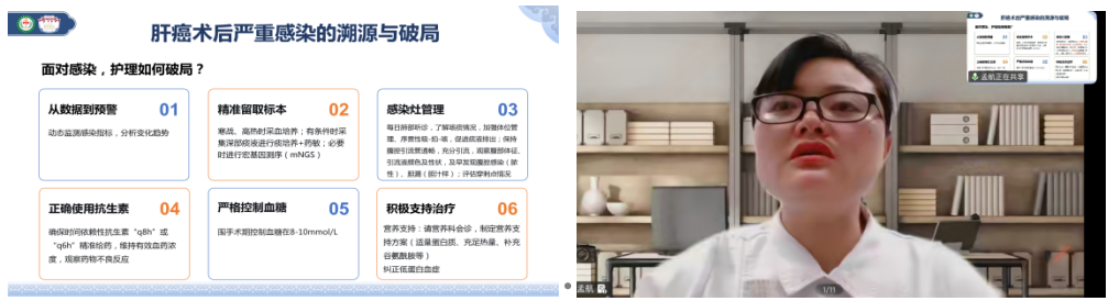 四川大学华西医院肝脏外科护士长吴孟航常委作为主讲人,结合临床实际病例,详细剖析了复杂肝癌切除术后多系统并发症的发生机制、监测要点与个性化管理策略,并就术后严重感染问题溯源外因和内因,提出了护理如何破局的集束化措施。