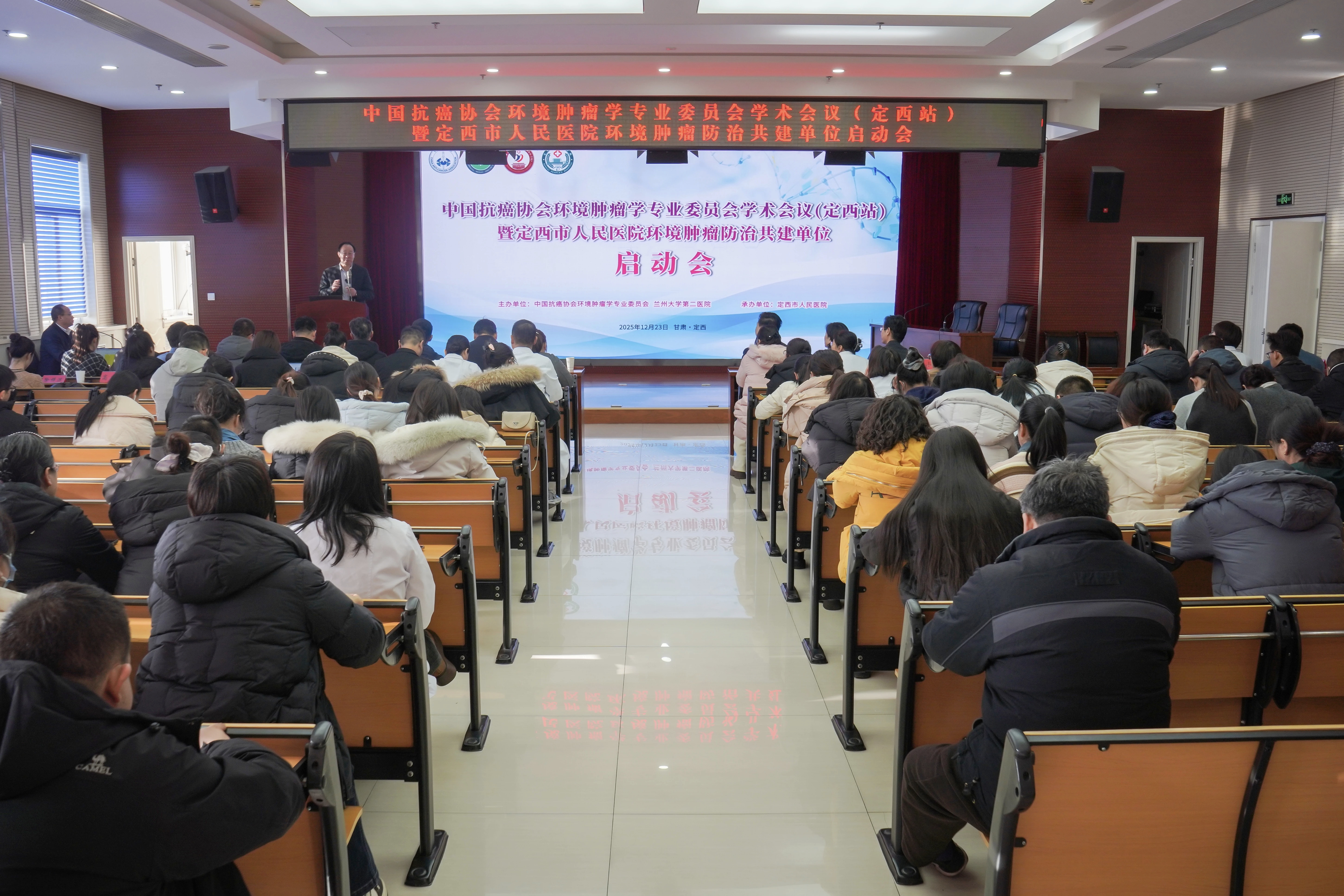2025 年 12 月 23 日,中国抗癌协会环境肿瘤学专业委员会学术会议(定西站)暨定西市人民医院环境肿瘤防治共建单位启动会在定西顺利举行。中国抗癌协会环境肿瘤学专业委员会主任委员、兰大二院普通外科国家临床重点专科首席专家李玉民教授,兰大二院总会计师刘立善,兰大二院普外科主任、医务处处长毛杰,定西市卫健委六级职员赵亚君,定西市人民医院院长周杰尚,定西市人民医院副院长曹旭升、翟德忠,定西市抗癌协会理事长刘小敏,定西市人民医院各科医务人员以及兰大二院专家团队200余人参加会议。