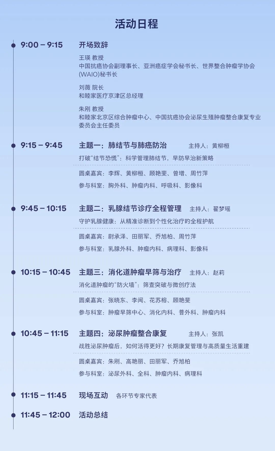 多学科圆桌对话:各环节均有多领域专家同台,围绕同一议题展开交流,展现整合诊疗的协同实践。