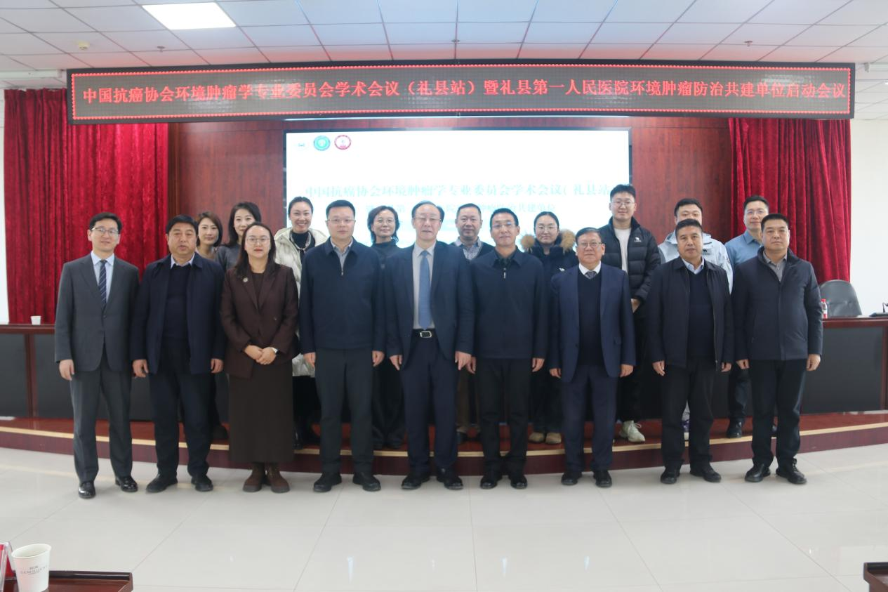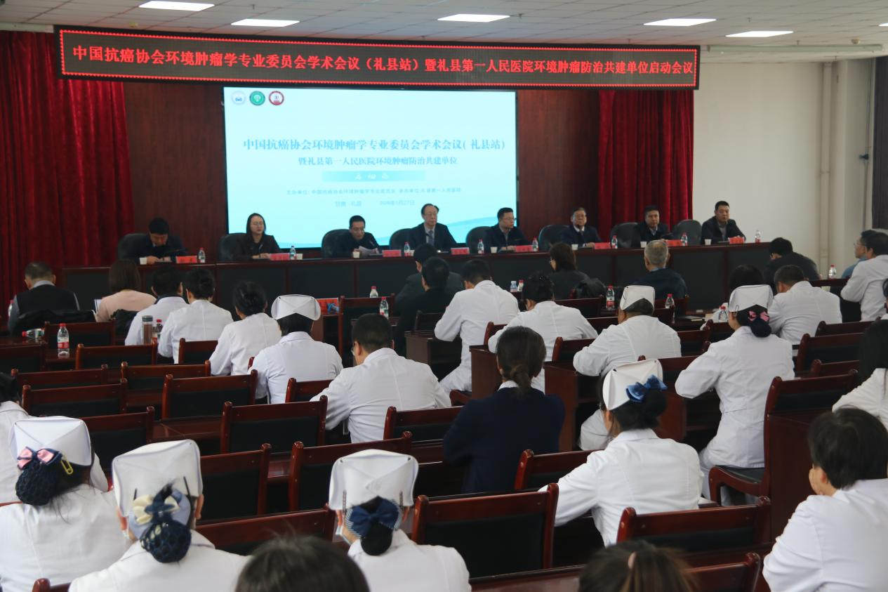 2026 年 1 月 27 日,中国抗癌协会环境肿瘤学专业委员会学术会议(礼县站)暨礼县人民医院环境肿瘤防治共建单位启动会在礼县顺利举行。中国抗癌协会环境肿瘤学专业委员会主任委员李玉民教授,兰州大学第一医院副院长赵达教授,兰州大学第一医院麻醉手术科副主任王永琦教授,兰州大学第二医院重症医学科副主任张军强教授、普外科副主任刘海鹏教授,陇南市卫健委党组书记、主任刘小研,礼县县长尚风雷,宣传部部长梁月红,卫健局局长杨伟,礼县人民医院党委书记罗文化、院长赵龙、副院长李亮等领导及环境肿瘤专委会团队,礼县县医院医护人员共 150 余人参加会议。