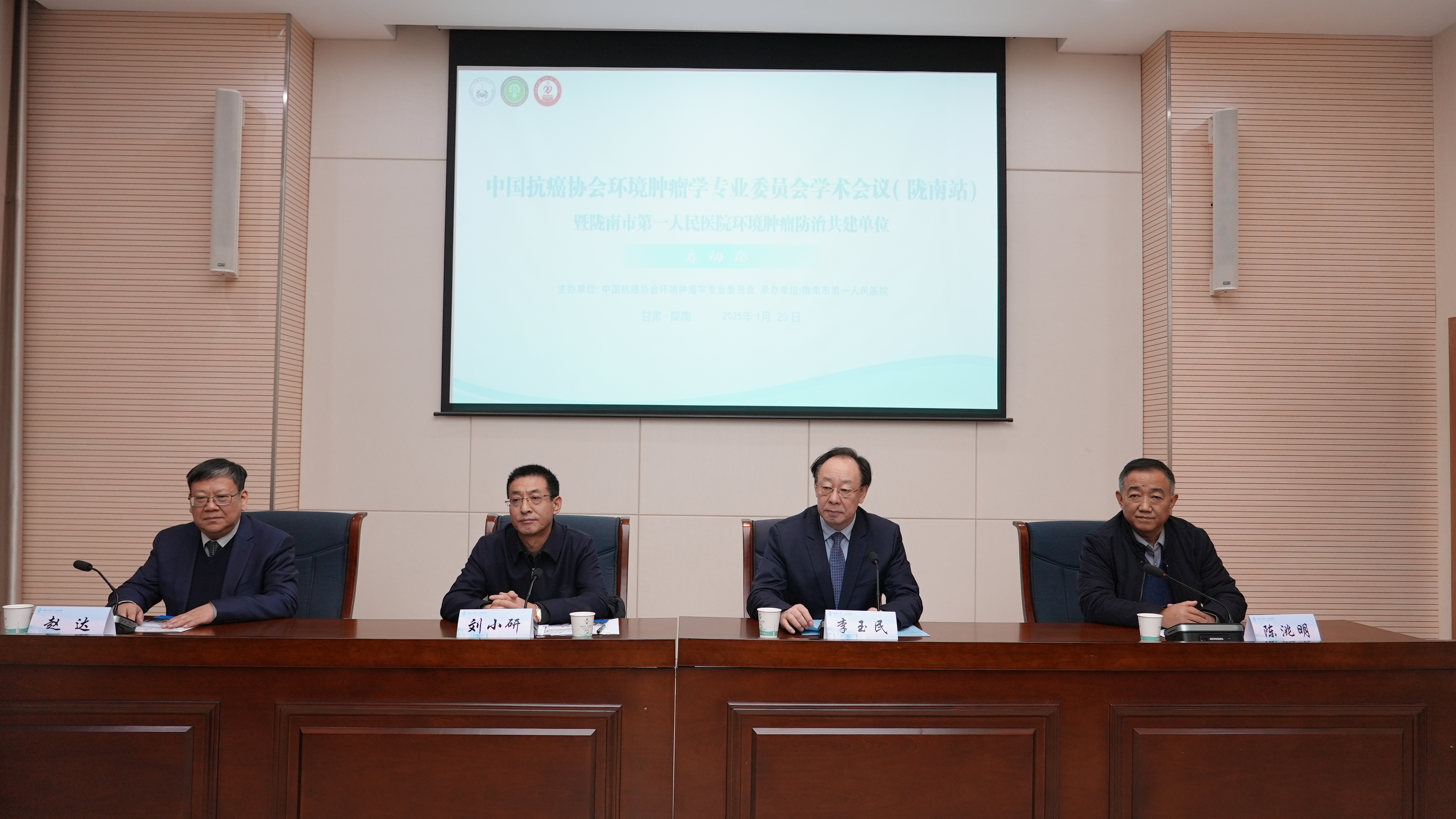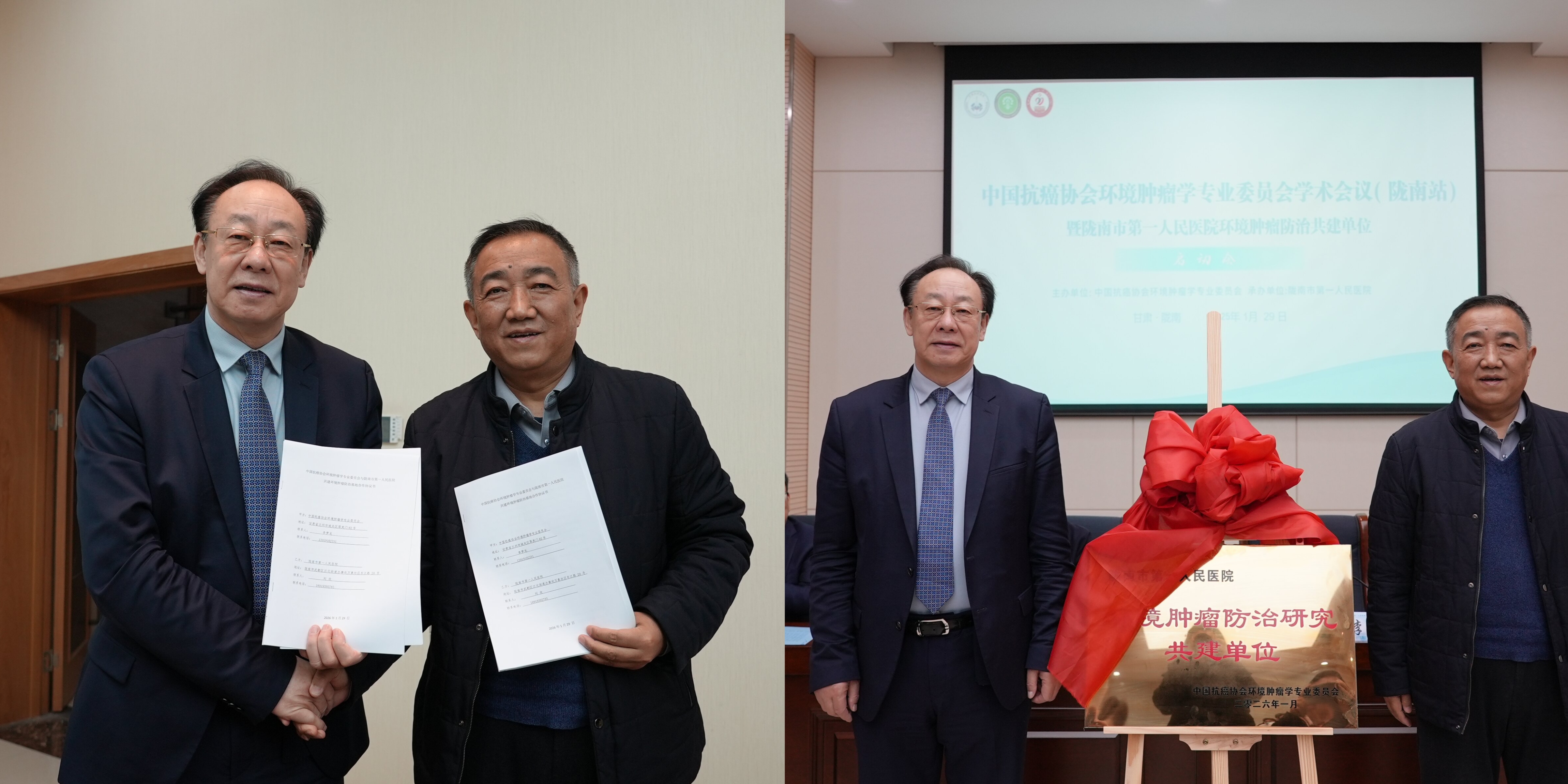 2026 年 1 月 29 日上午,中国抗癌协会环境肿瘤学专业委员会学术会议(陇南站)暨陇南市第一人民医院环境肿瘤防治共建单位启动会在陇南市顺利举行。中国抗癌协会环境肿瘤学专业委员会主任委员李玉民教授,兰州大学第一医院副院长赵达教授,麻醉科主任任旭东教授、副主任王永琦教授,兰州大学第二医院重症医学科副主任张军强教授、普外科副主任刘海鹏教授,陇南市卫健委主任刘小研,陇南市第一人民医院党委书记、院长陈洮明,副院长李朝明,副院长王强,党委委员宋凯,环境肿瘤学专委会专家团队及市医院医务人员120余代表参会。
