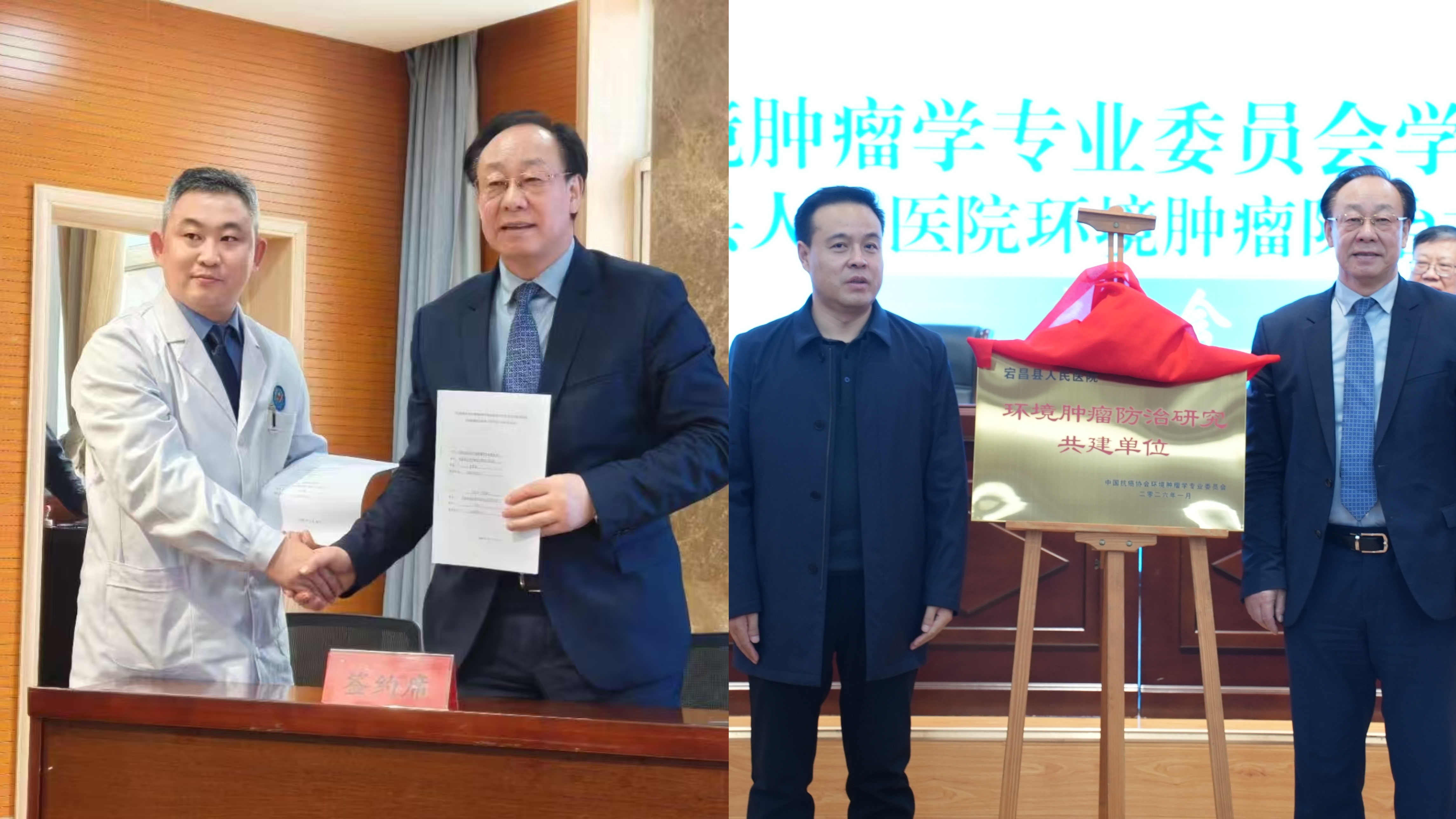 李玉民教授与王军院长共同签署了环境肿瘤防治共建单位合作协议书。随后,李玉民教授与张继龙县长一同为共建单位揭牌。标志着宕昌县人民医院环境肿瘤防治共建单位正式成立。