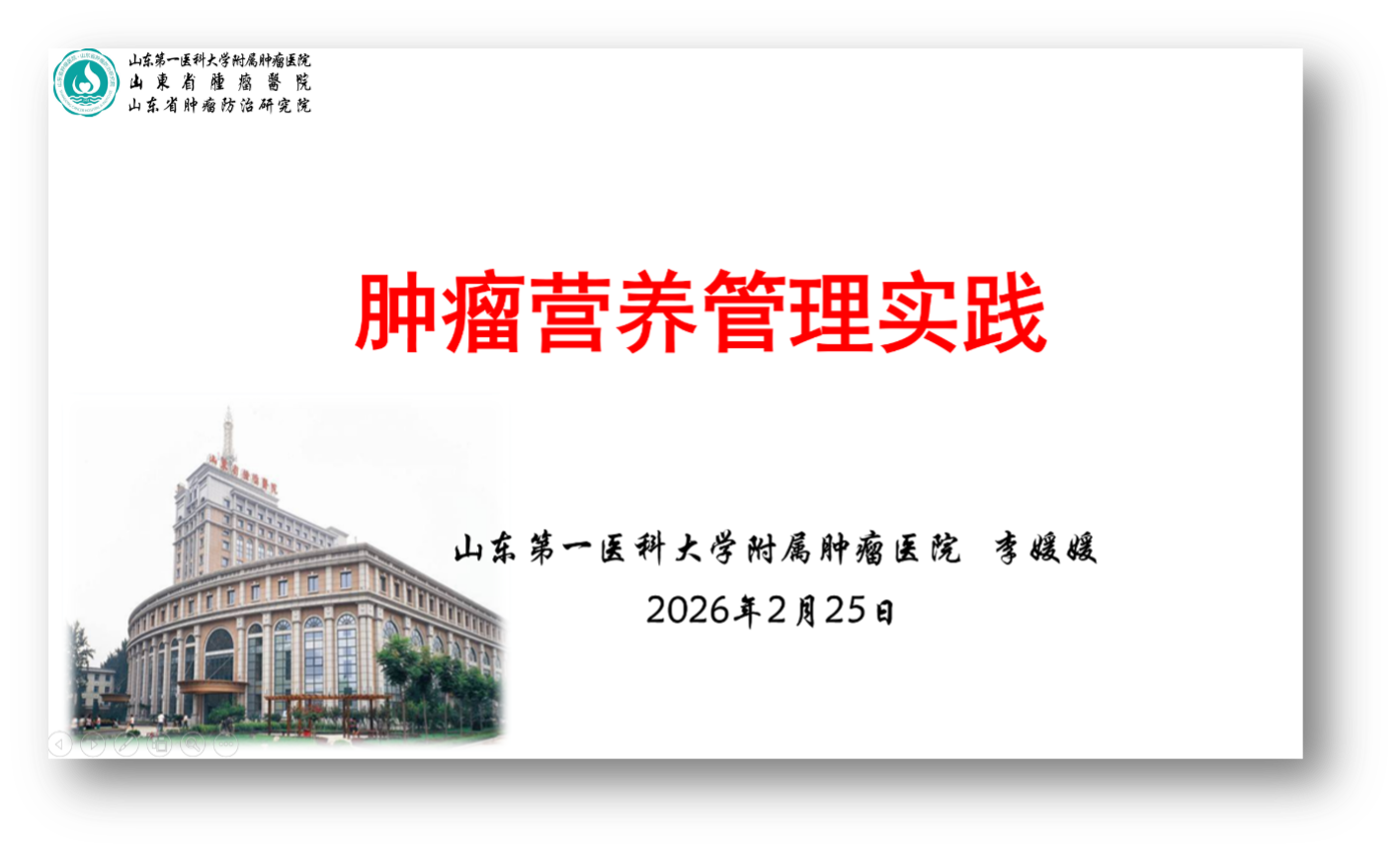 山东第一医科大学附属肿瘤医院李媛媛教授做《肿瘤营养管理实践》汇报