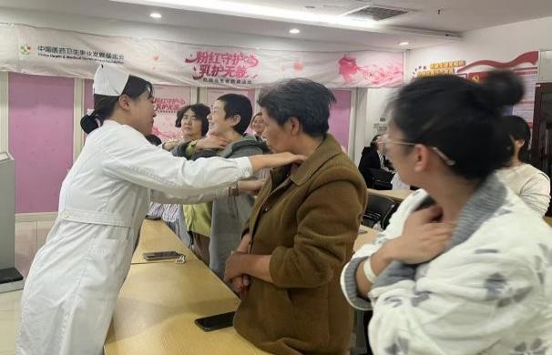治疗师通过现场示范与个体化指导,助力患者掌握正确的自我护理技巧。在居家测量臂围时,治疗师现场展示标准化测量方法,同时着重强调固定测量时间和体位对于确保数据可比性的重要性,并指导患者运用专用记录表记录每次测量结果,以便动态观察水肿变化趋势。在皮肤护理示范中,护士着重讲解清洁、保湿和防护的三步法:清洁时应使用温和无刺激的中性沐浴露,将水温控制在约37℃,避免用力搓揉;保湿推荐使用含神经酰胺或透明质酸的医用润肤霜,每日早晚涂抹于患肢并按摩至完全吸收,尤其要关注指缝、肘部等易干燥部位;防护方面,提醒患者避免蚊虫叮咬、尖锐物品划伤,做家务时需佩戴棉质手套,以减少化学洗涤剂对皮肤的刺激。在自我淋巴引流手法训练中,治疗师详尽讲解从远心端到近心端的按压方向、力度控制以及关键淋巴结区域的重点操作,确保患者能够准确模仿并应用于日常护理。居家康复操依据患者病情严重程度和身体耐受度,分为基础版、进阶版和强化版,每个动作均配有清晰的动作分解图和注意事项说明,患者可根据自身情况选择适宜的训练强度。在压力袖套选择环节,治疗师先让患者了解不同压力级别的适用场景,再结合患者的水肿程度、日常活动需求以及皮肤敏感状况进行推荐。患者积极参与互动,认真练习每个动作。