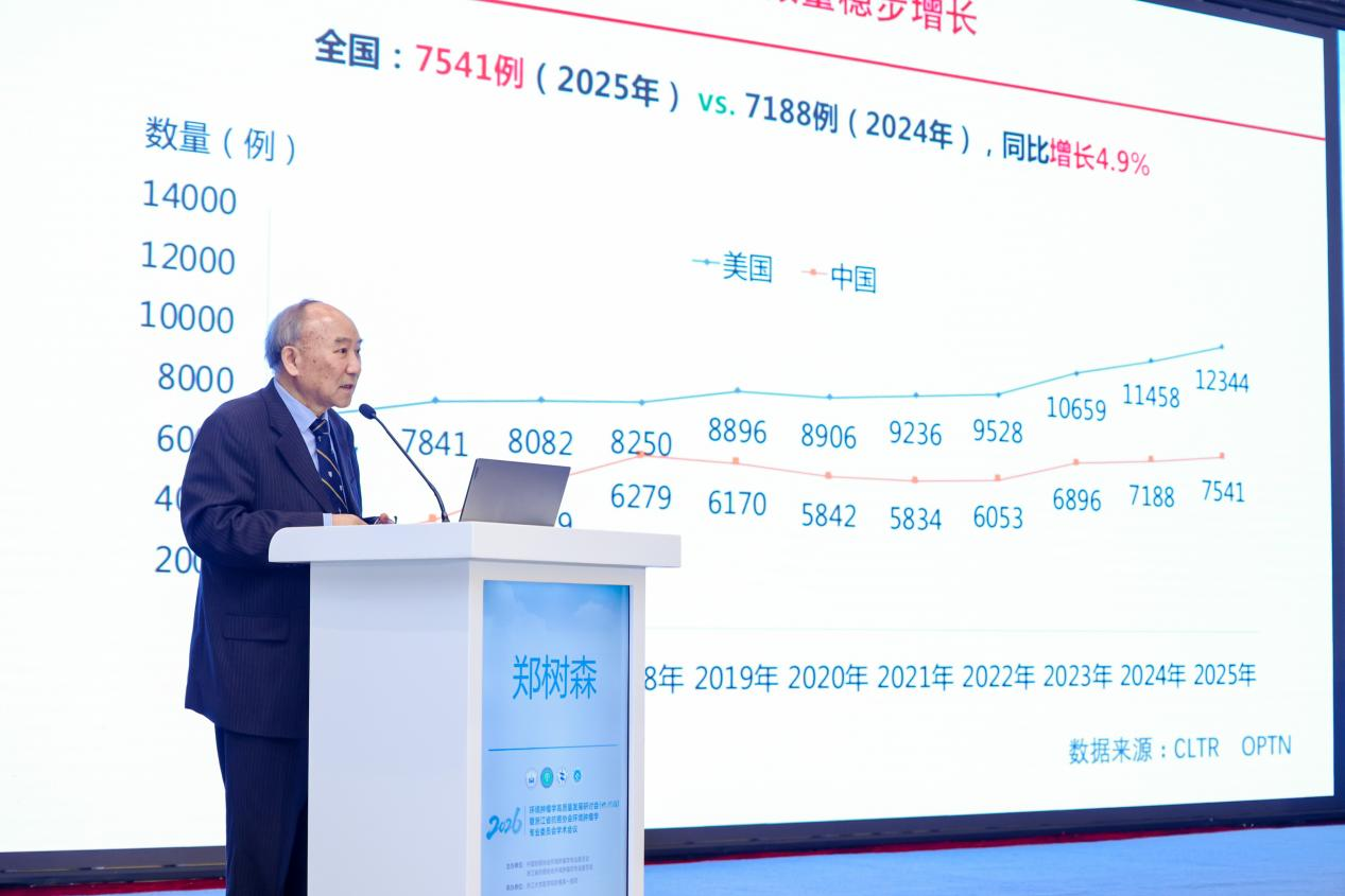 在随后进行的主旨报告环节,中国工程院院士、浙江大学医学院附属第一医院郑树森教授以《肝癌肝移植进展》为题作首场报告。他系统阐述了肝移植在肝癌治疗中的最新技术突破与临床应用进展,从移植指征的精准把握到围手术期管理的优化,全面展现了我国在肝胆胰疾病领域的国际引领地位,为终末期肝病及肝癌患者带来了新的生存希望。