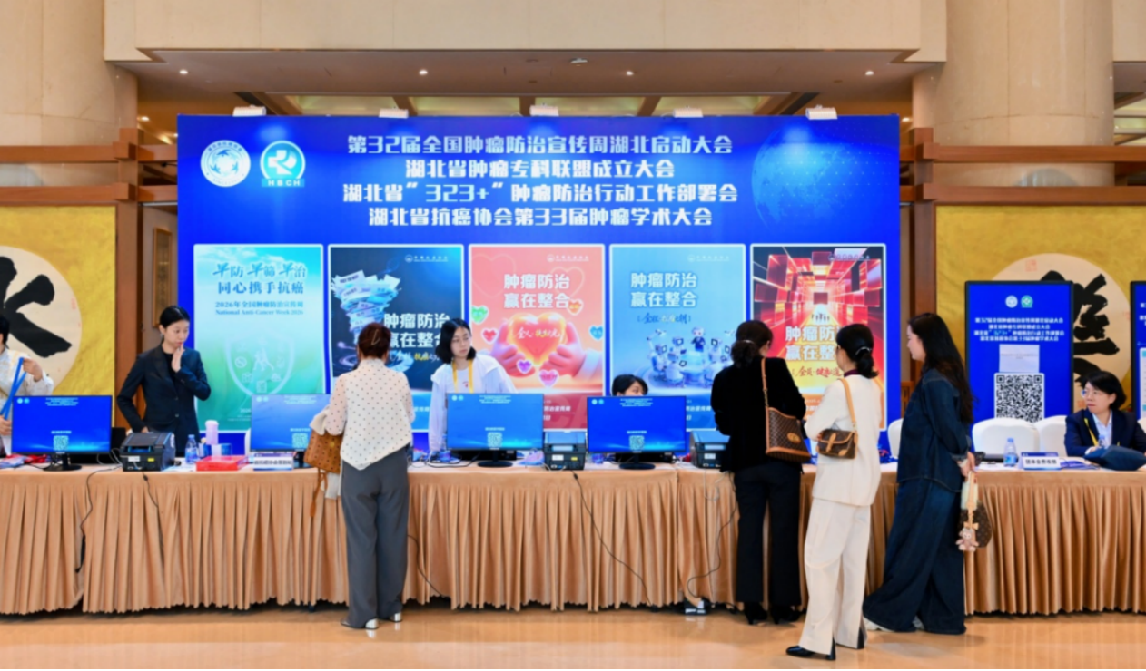 4 月 11 日,第 32 届全国肿瘤防治宣传周湖北启动大会在武汉隆重举行。本次大会以“肿瘤防治 赢在整合”为主题,由湖北省抗癌协会、湖北省癌症中心、湖北省肿瘤专科联盟联合主办,湖北省肿瘤医院承办,同步举办湖北省抗癌协会第33届肿瘤学术大会、湖北省肿瘤专科联盟成立大会、湖北省肿瘤登记数据发布会、湖北省 “323+” 肿瘤防治行动工作部署会,凝聚全省肿瘤防治合力,推动肿瘤防治事业高质量发展。