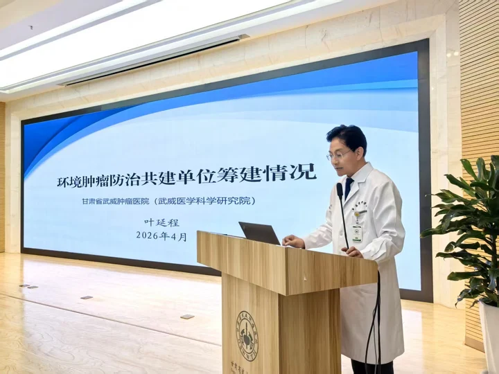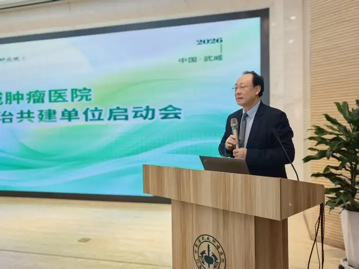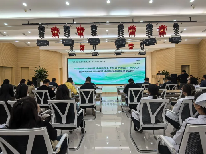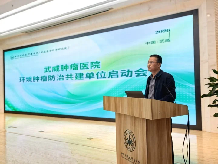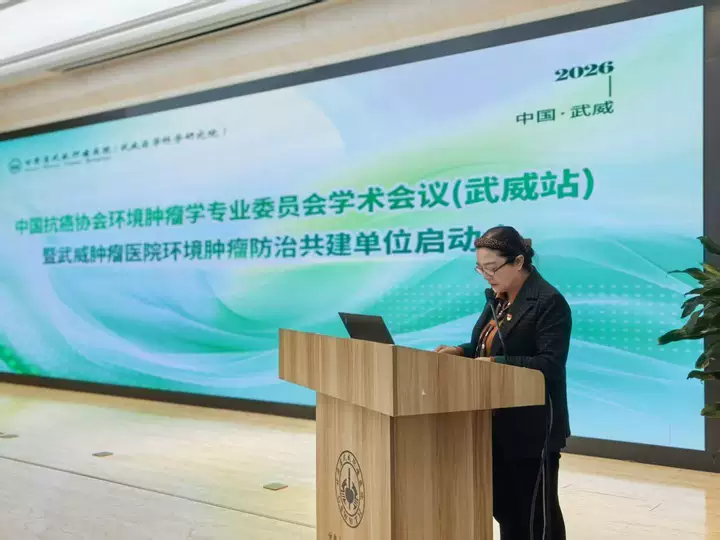 2026 年4月2日,中国抗癌协会环境肿瘤学专业委员会学术会议(武威站)暨武威肿瘤医院(武威医学科学研究院)环境肿瘤防治共建单位启动会在武威顺利举行。中国抗癌协会环境肿瘤学专业委员会主任委员李玉民教授,兰州大学第一医院副院长赵达教授,兰州大学第二医院肝胆外科主任张辉教授、重症医学科副主任张军强教授、肿瘤外科党建中教授、杜志兴教授,武威市卫健委党组成员副主任张辉,武威肿瘤医院党委书记张伟鸿,叶延程院长等领导、环境肿瘤学专委会专家团队及武威肿瘤医院医务人员200余人参加会议。