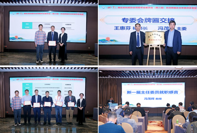 随后,湖北省医学评价与继续教育办公室社团组织部负责人陈雨宣读换届批复并讲话,对专委会发展提出殷切期望。大会严格按程序选举产生第三届胃癌专委会主要负责人:武汉大学中南医院胃肠外科冯茂辉教授当选新一届主任委员,华中科技大学同济医学院附属同济医院吴剑宏教授、湖北省肿瘤医院熊治国教授、武汉大学人民医院郑勇斌教授、华中科技大学同济医学院附属协和医院张鹏教授、武汉市中心医院王辉教授当选副主任委员。会上进行了证书颁发与牌匾交接。冯茂辉教授发表就职感言,表达了胃癌专委会将在省抗癌协会领导下深耕胃肠肿瘤领域、服务临床与患者的决心。会议同期成立了新的党小组,组织了党课学习,为专委会工作的开展筑牢思想根基。