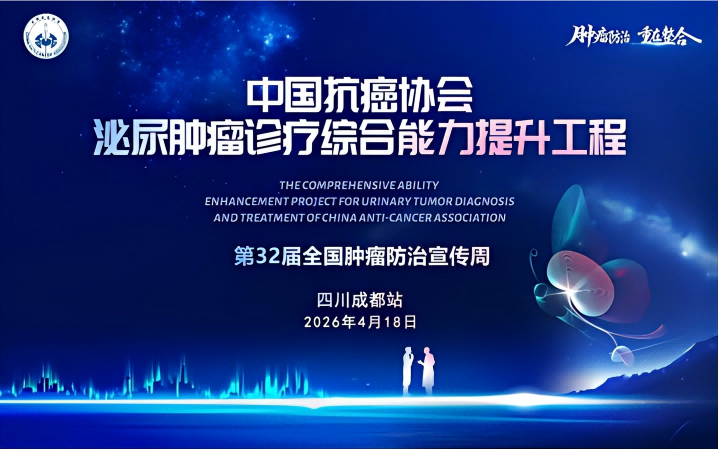 2026年4月18日,“2026年中国抗癌协会泌尿肿瘤诊疗综合能力提升工程”在成都顺利召开。本次会议由中国抗癌协会指导,中国抗癌协会泌尿系统肿瘤专业委员会主办,会议主席中国抗癌协会泌尿系统肿瘤专业委员会主任委员姚欣教授、副主任委员李响教授和张雪培教授,会议围绕前列腺癌与尿路上皮癌等热点议题,开展专题报告与讨论交流,助力泌尿肿瘤规范化诊疗能力提升。