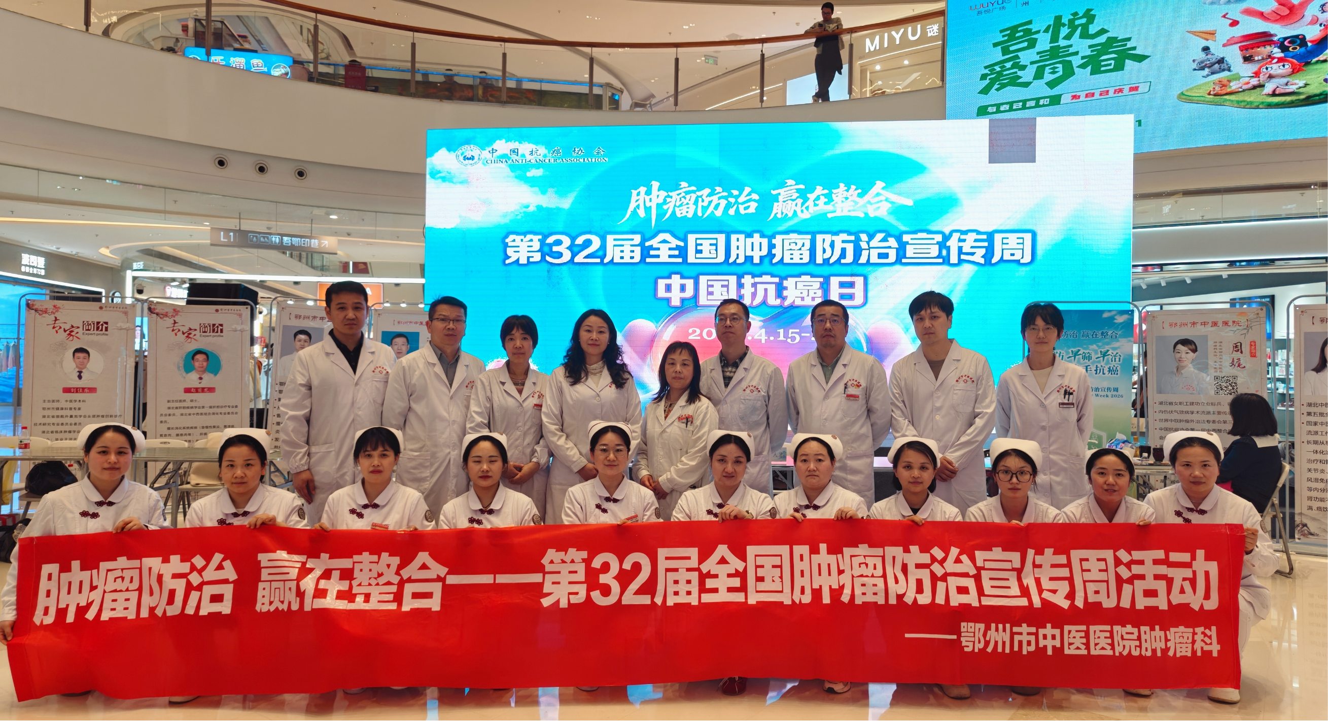 2026年4月8日—17日,鄂州市中医医院第32届全国肿瘤防治宣传周系列活动如期开展。作为湖北省抗癌协会理事单位,医院紧扣“肿瘤防治 赢在整合”主题,积极统筹部署、精心策划,围绕宣传主题组织开展多项形式多样、内容丰富的健康教育和公益服务活动,取得了良好社会效果。