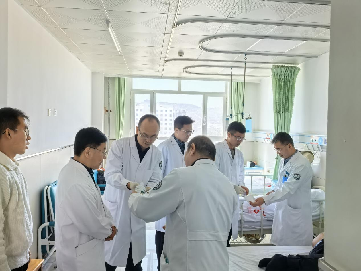 义诊结束后,在黄炯书记陪同下,专家团队深入内科病房开展教学查房。李军教授为住院肿瘤患者进行床边查体,与主管医生深入讨论病情,共同制定规范化治疗方案。通过"手把手"带教,切实提升基层医师临床思维与诊疗能力,实现"输血"与"造血"并重。