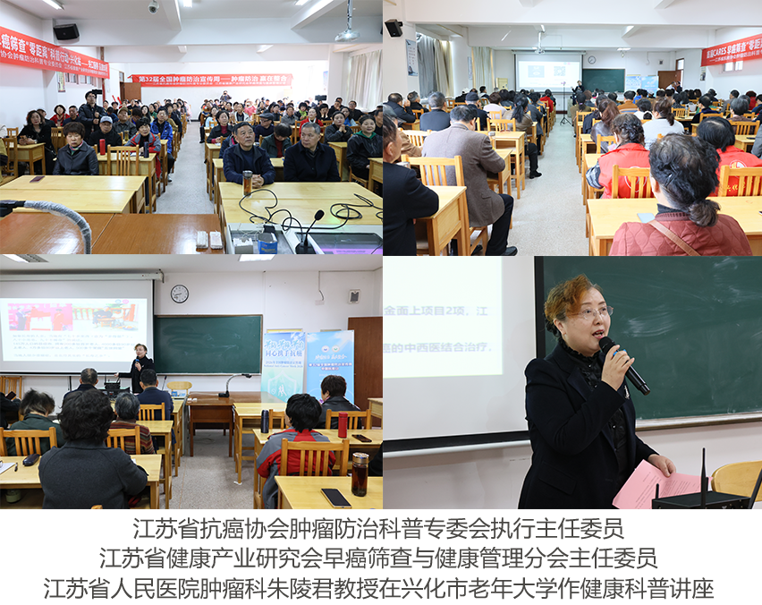 · 科普讲堂座无虚席:江苏省抗癌协会肿瘤科普防治专委会执行主任委员、江苏省健康产业研究会早癌筛查与健康管理分会主任委员朱陵君教授,在兴化市老年大学、江苏勤善堂开展的“守住健康第一关--肿瘤早期筛查的‘金钥匙’”科普讲堂,吸引了众多市民前来学习,现场座无虚席。