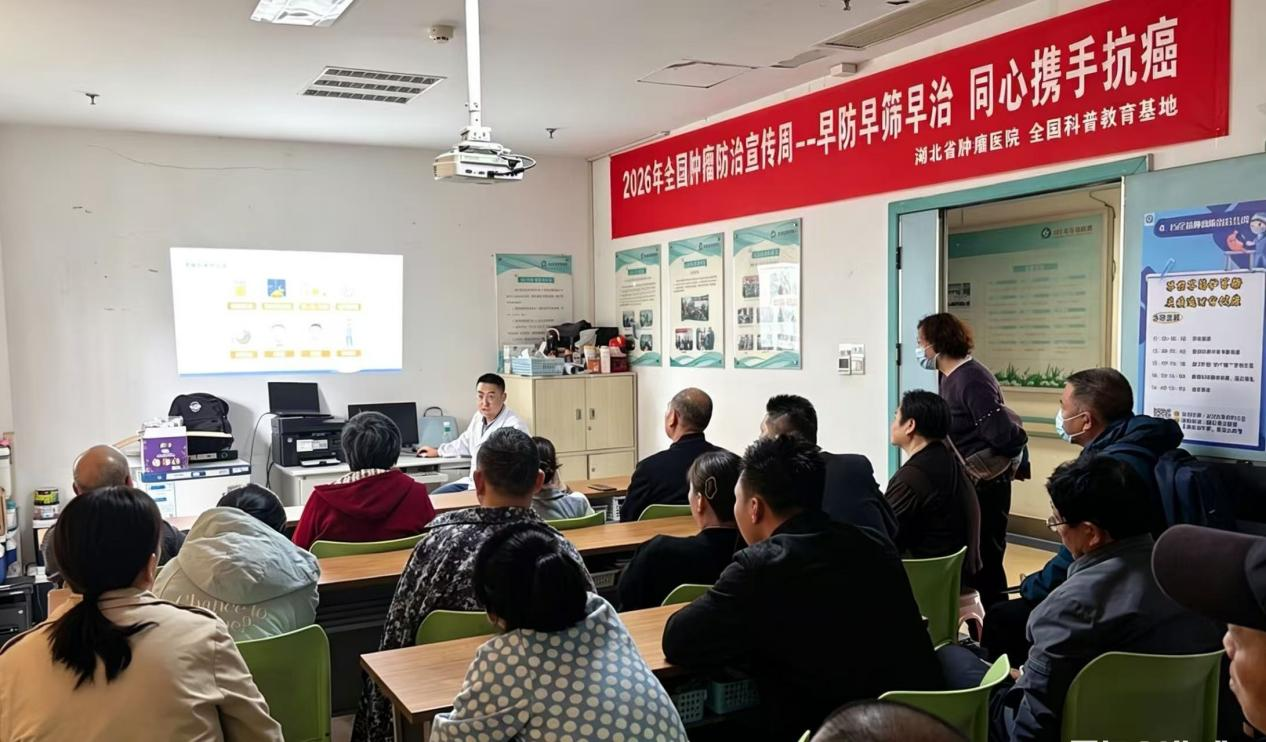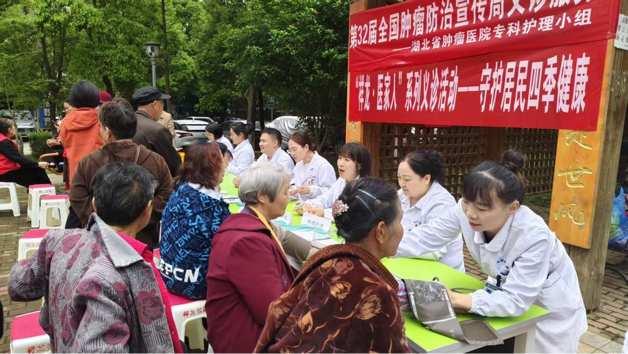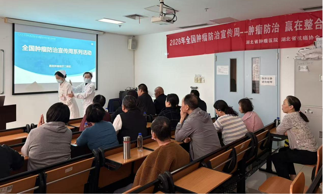 2026 年 4 月 15 日 —21 日是第 32 届全国肿瘤防治宣传周,今年主题为“肿瘤防治 赢在整合”、“早防早筛早治,同心携手抗癌”。作为湖北省抗癌协会理事长单位,湖北省肿瘤医院在承办全国肿瘤防治宣传周湖北启动式后,联合湖北省抗癌协会,密集开展科普传播、公益义诊、科室宣教等多元活动,以实际行动普及防癌知识、传递抗癌温暖,全面助力全省肿瘤防治工作走深走实。