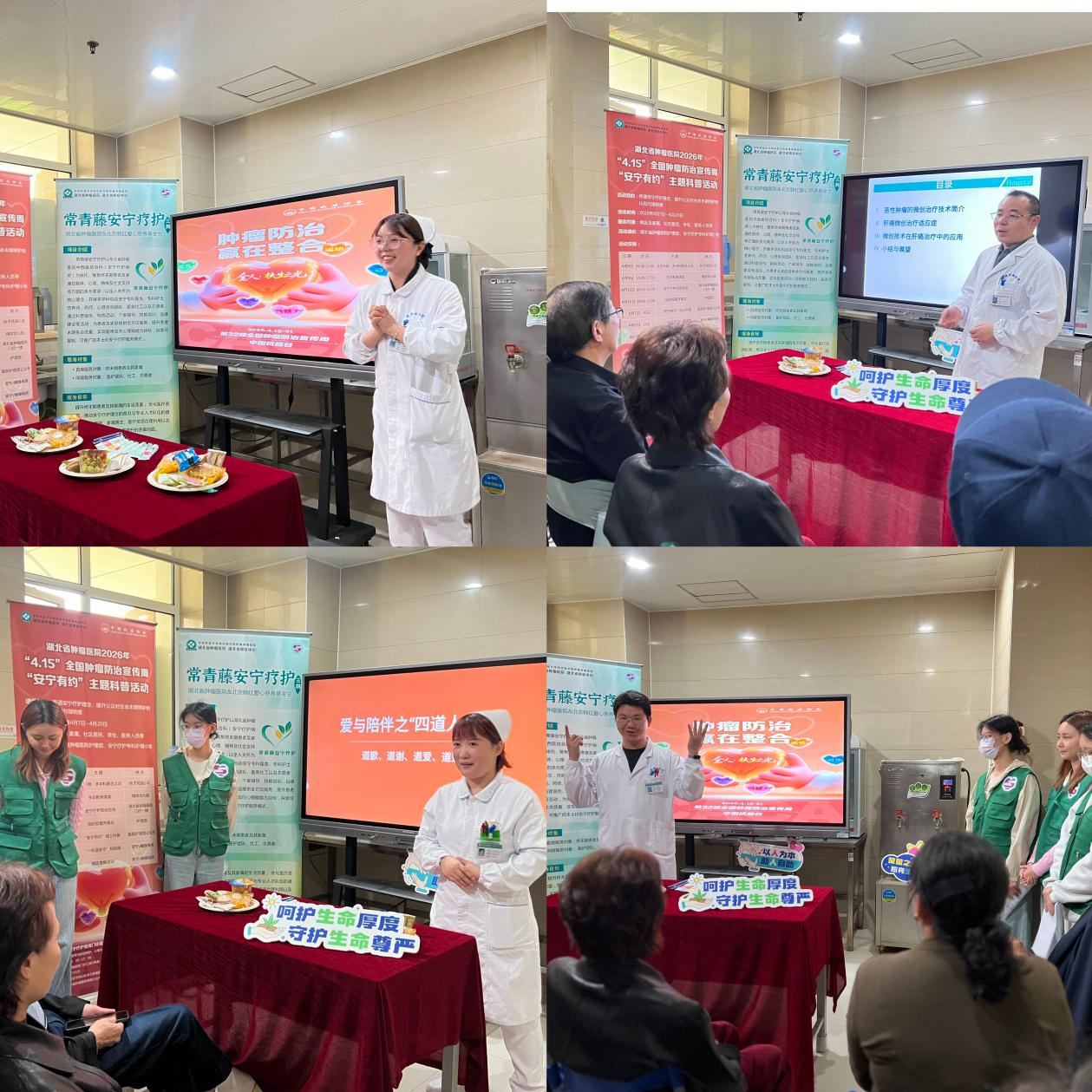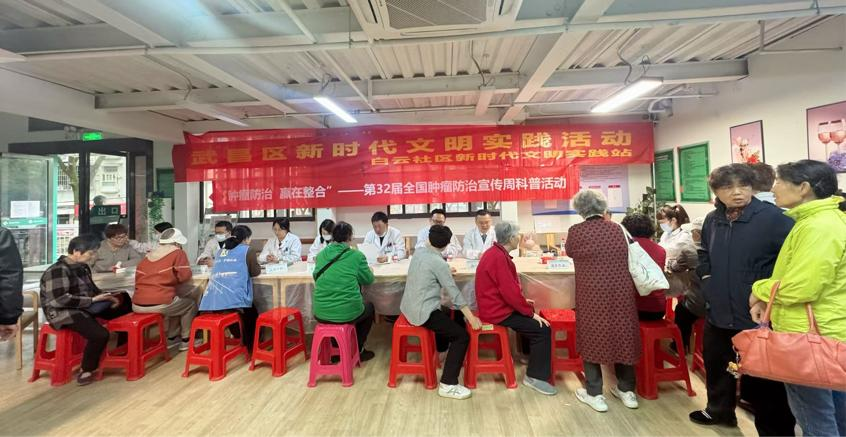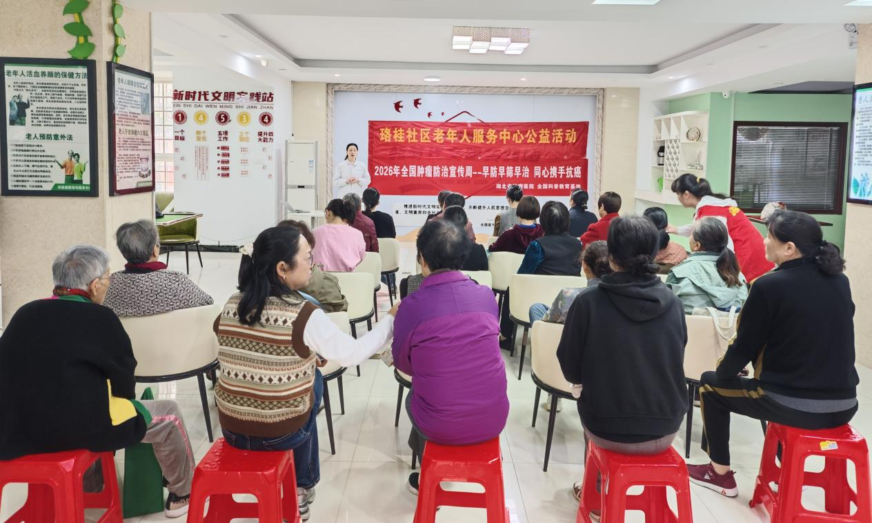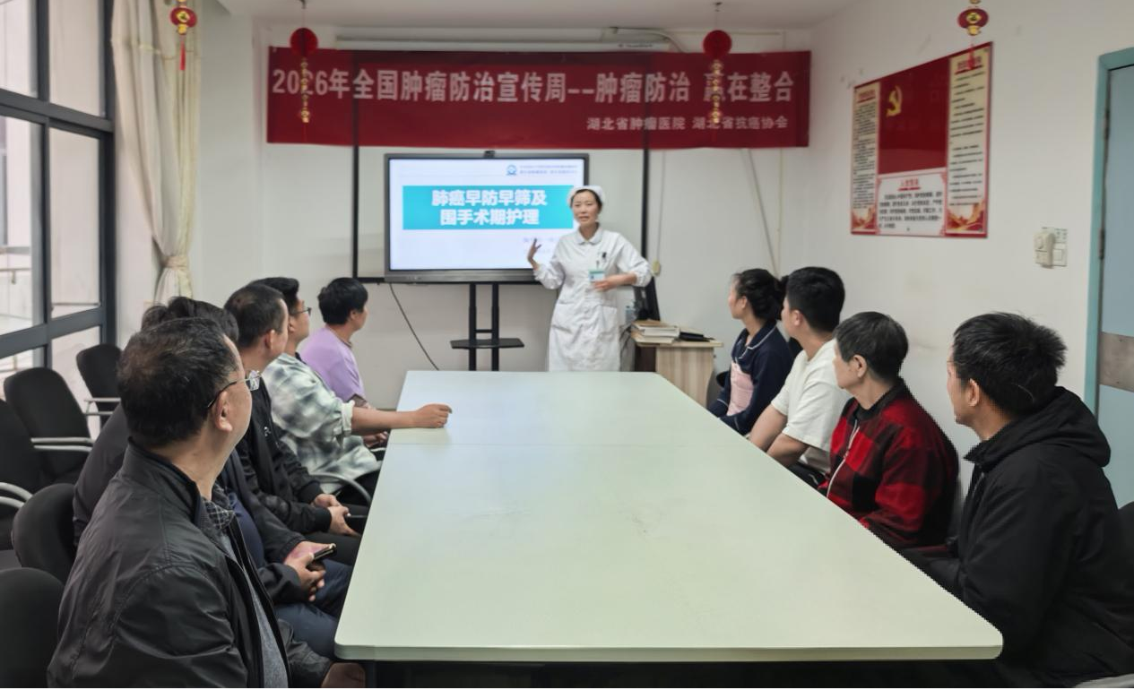 2026 年 4 月 15 日 —21 日是第 32 届全国肿瘤防治宣传周,今年主题为“肿瘤防治 赢在整合”、“早防早筛早治,同心携手抗癌”。作为湖北省抗癌协会理事长单位,湖北省肿瘤医院在承办全国肿瘤防治宣传周湖北启动式后,联合湖北省抗癌协会,密集开展科普传播、公益义诊、科室宣教等多元活动,以实际行动普及防癌知识、传递抗癌温暖,全面助力全省肿瘤防治工作走深走实。