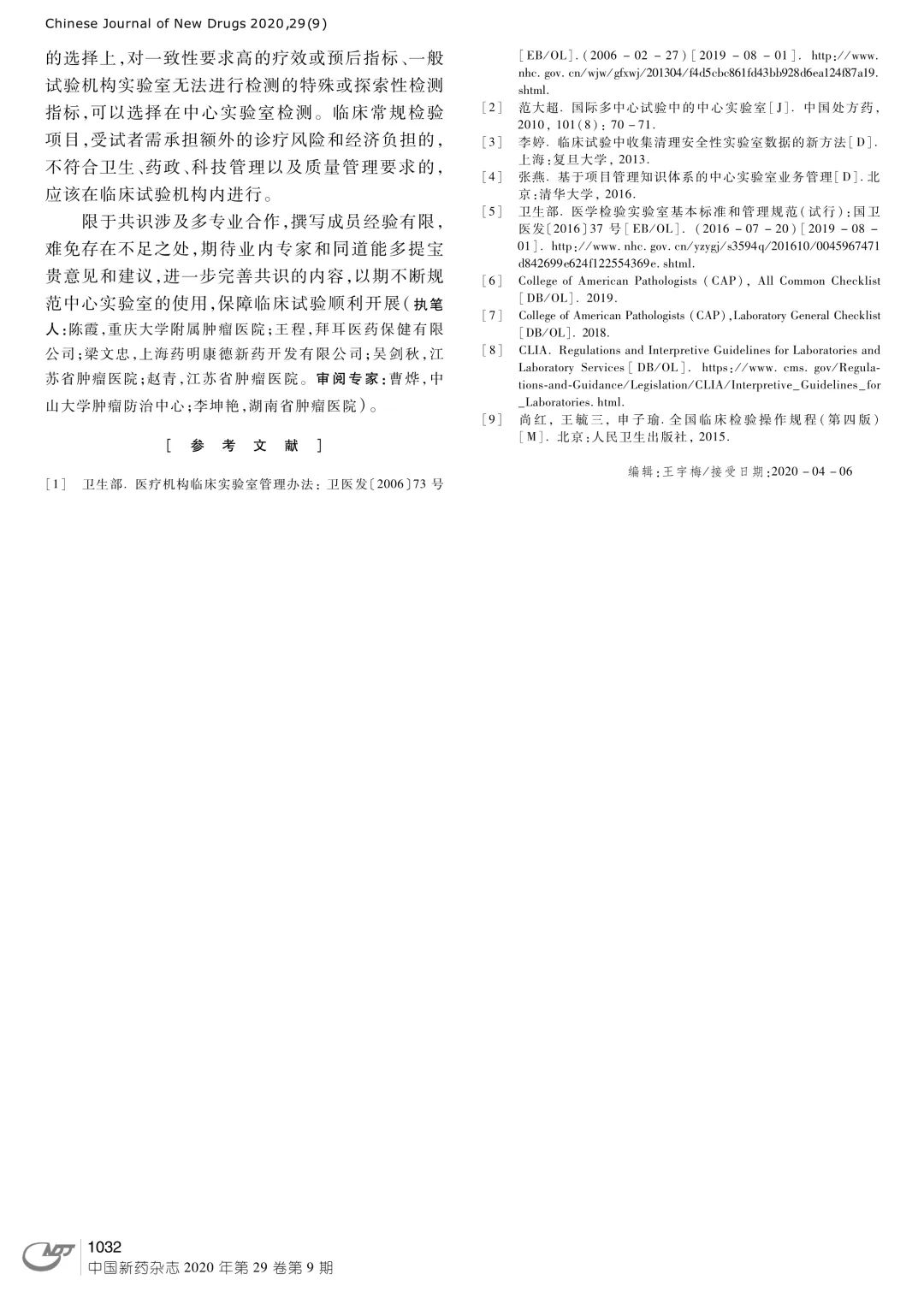 抗肿瘤药物临床试验中心实验室使用专家共识